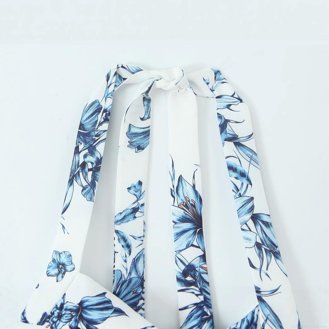 Women Halter Neck V-Neck Floral Print Mini Dress Sexy Backless Sleeveless A-Line Polyester Vacation Beach Party Swing Dresses For Ladies Summer