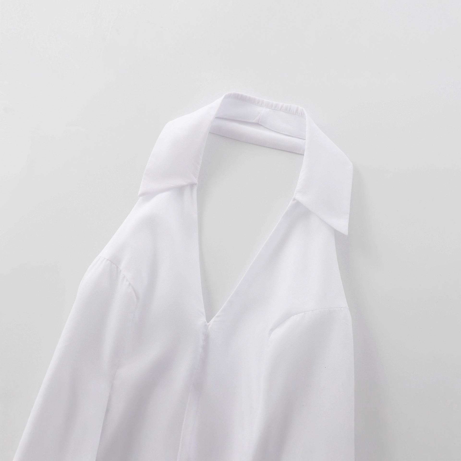Solid Color, Neckband, Pleats, V-neck, Lace, Backless