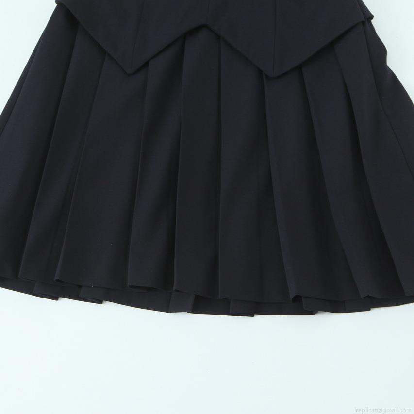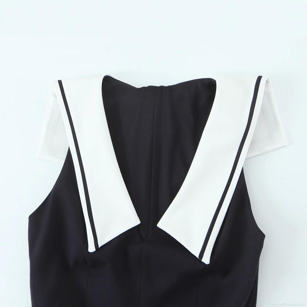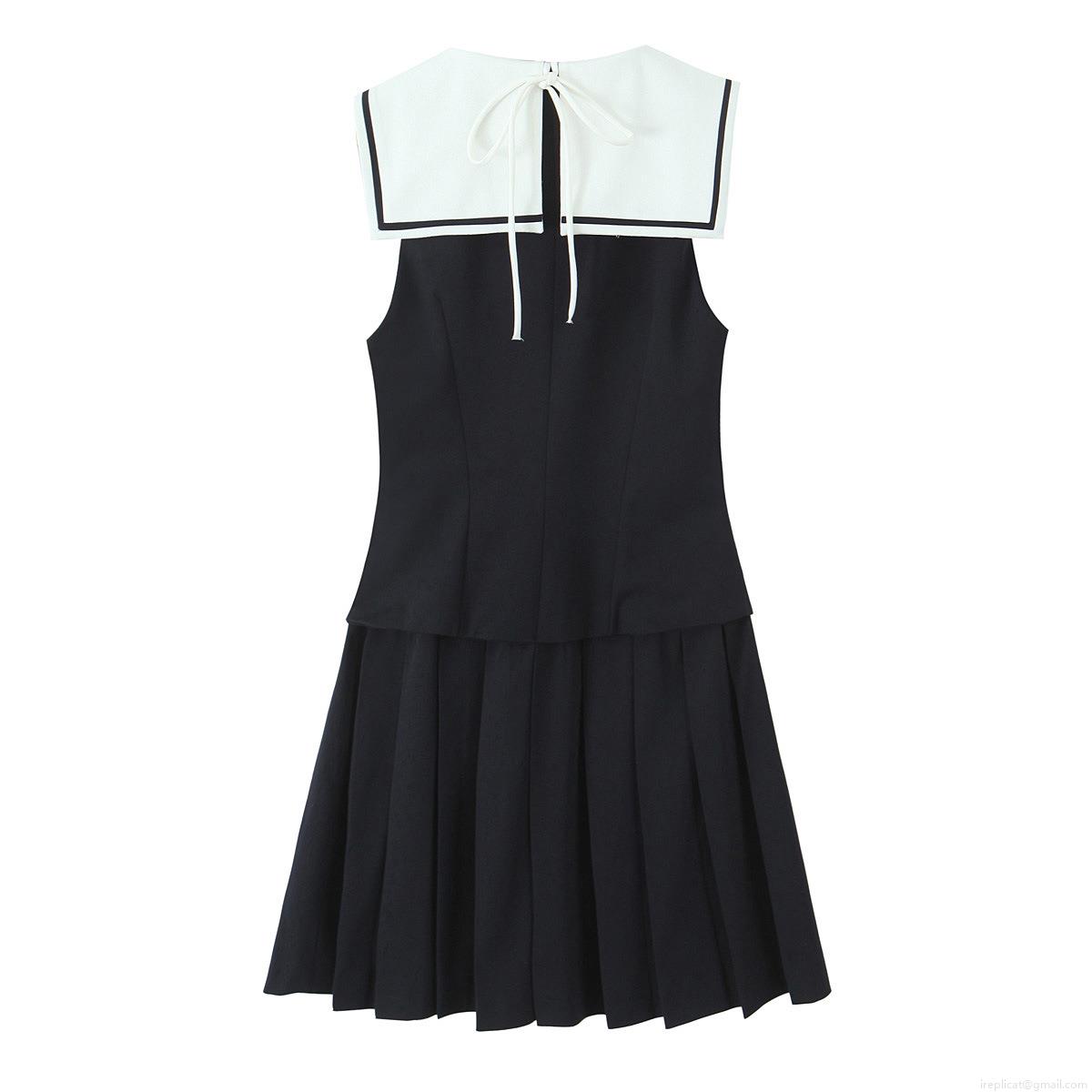 • Women Japanese School Style Sailor Collar Sleeveless Pleated Mini Dress Navy Blue White Contrast Preppy Style Dress With Bow Tie