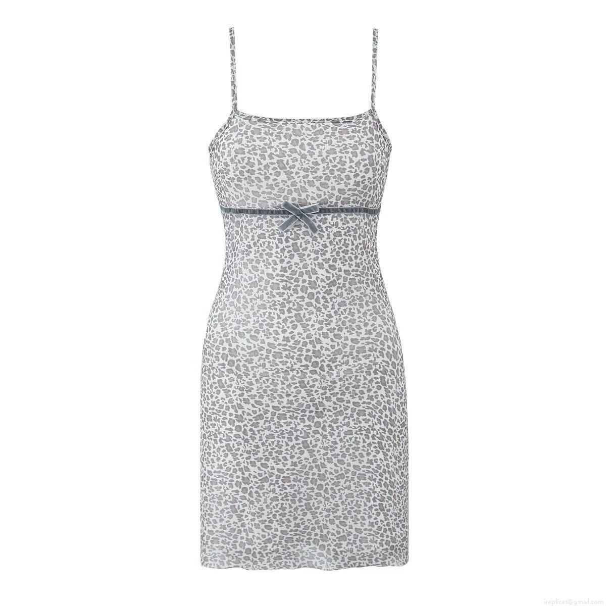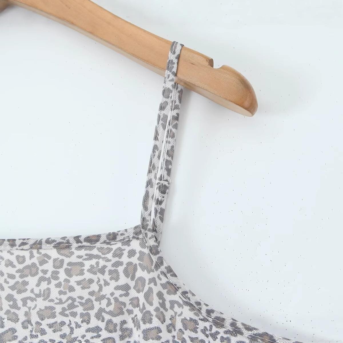 • Women Leopard Print Camisole Dress Mesh Polyester Spandex Sexy Slim Fit Mini Dress With Velvet Bow Adjustable Straps Party Nightwear Summer Fashion