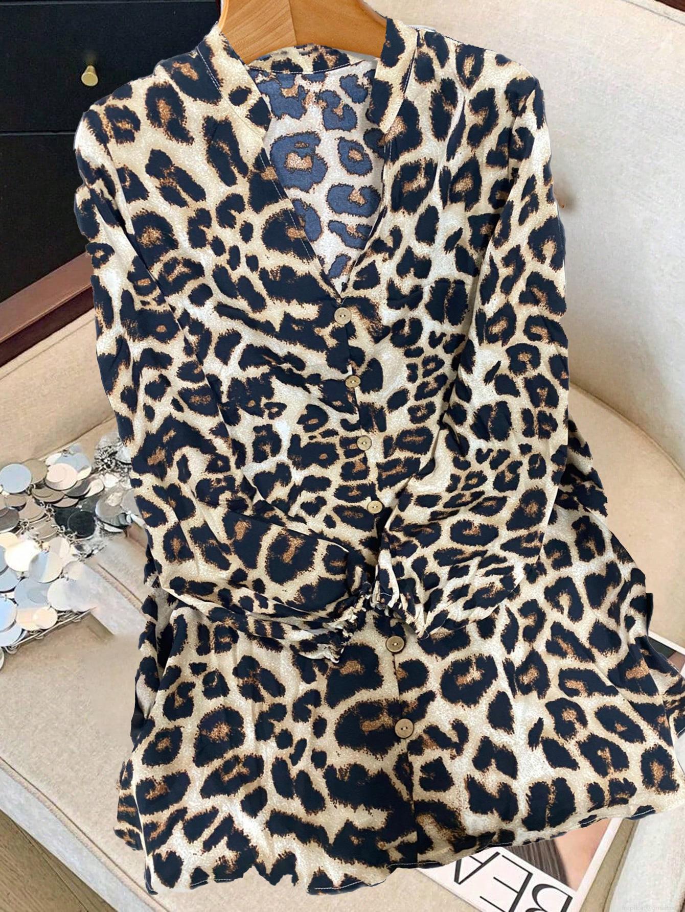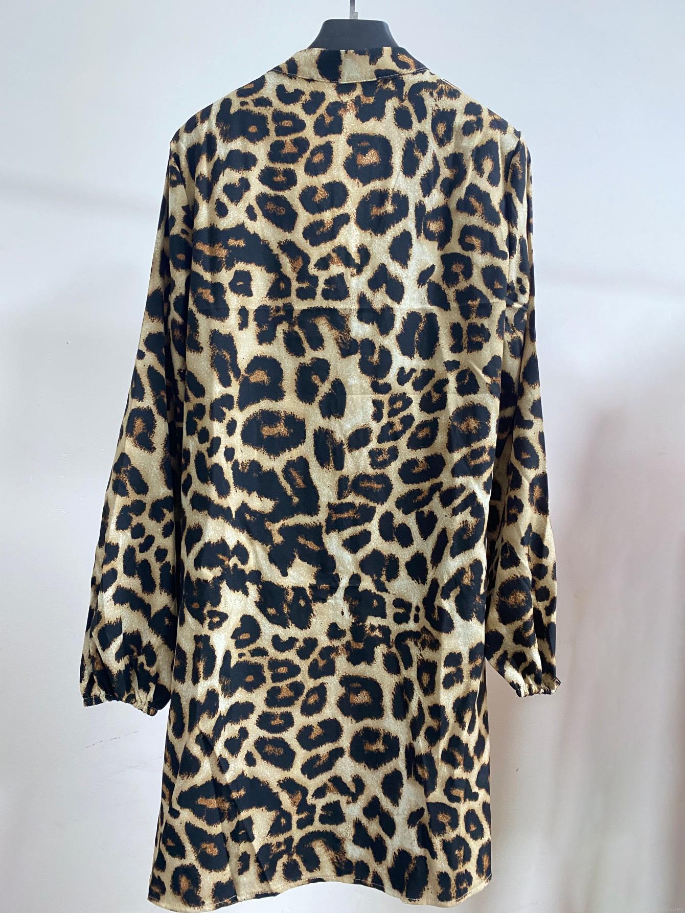 • Women Leopard Print Shirt Dress Long Sleeve V-Neck Loose Button Mini Dress Casual Streetwear Sexy Spring Summer Polyester Spandex Blouse Top For Women