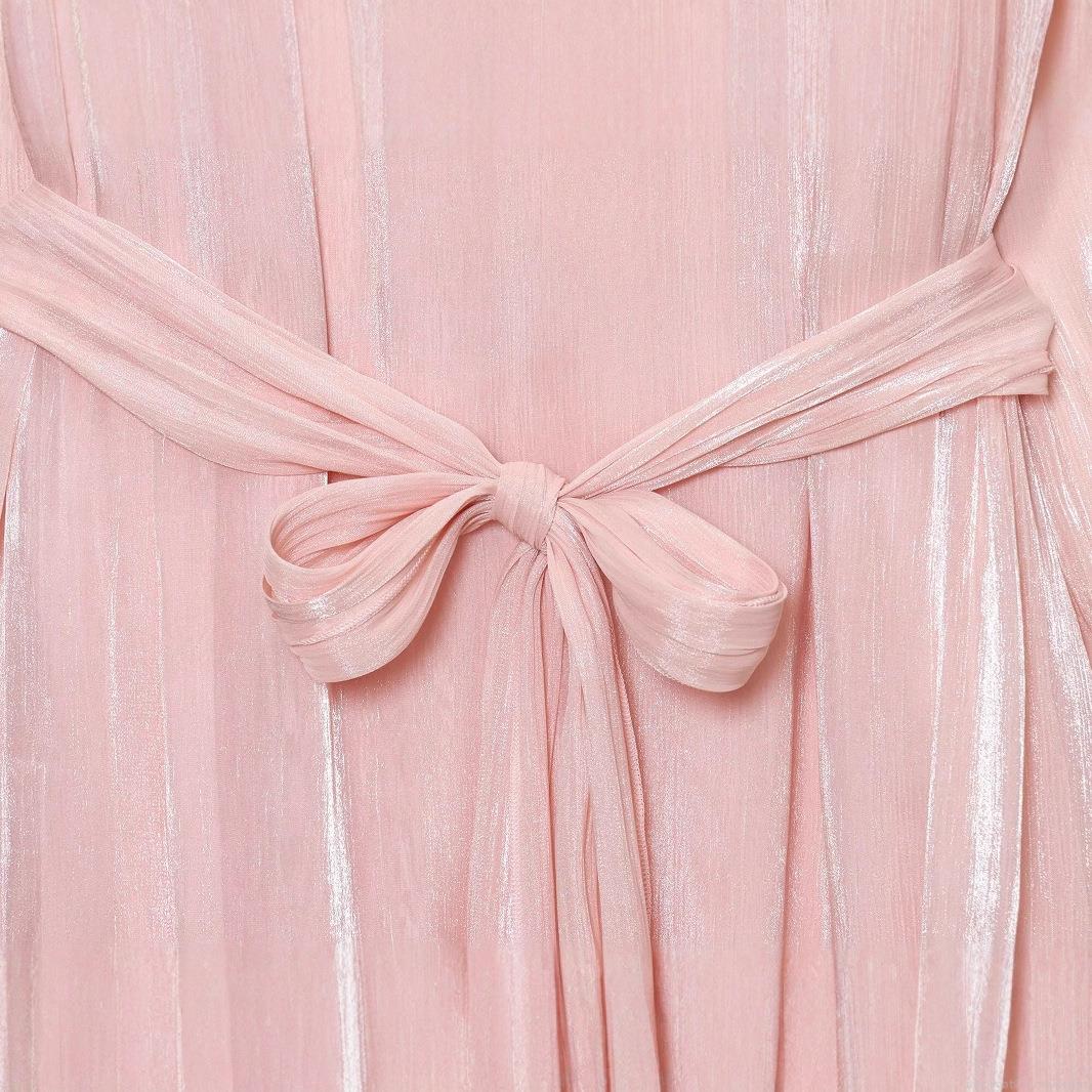 Women Metallic Shiny Pleated Mini Dress V-Neck Long Sleeve Tie Waist Irregular Hem Ruffle Cuff Party Night Out Sexy Club Dress