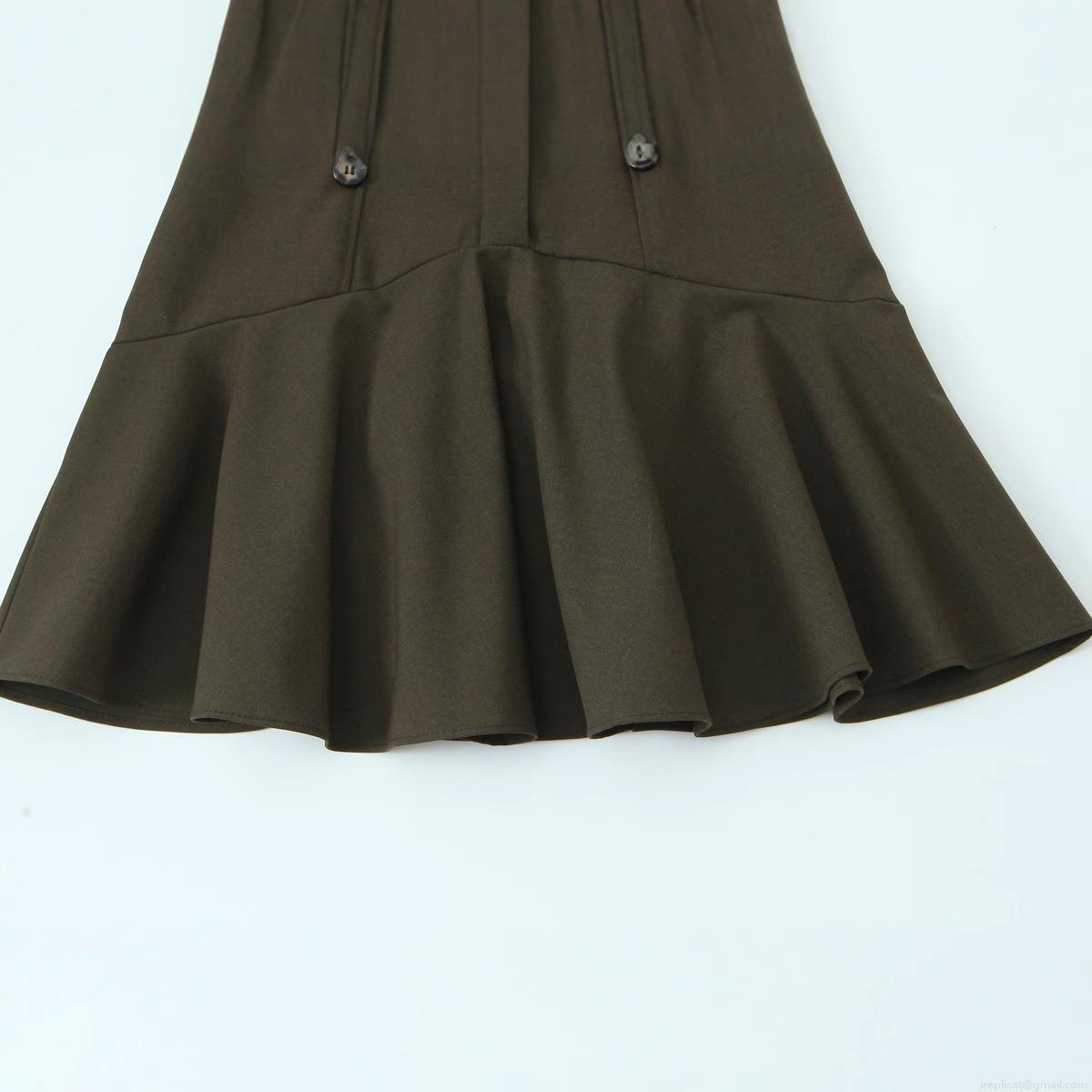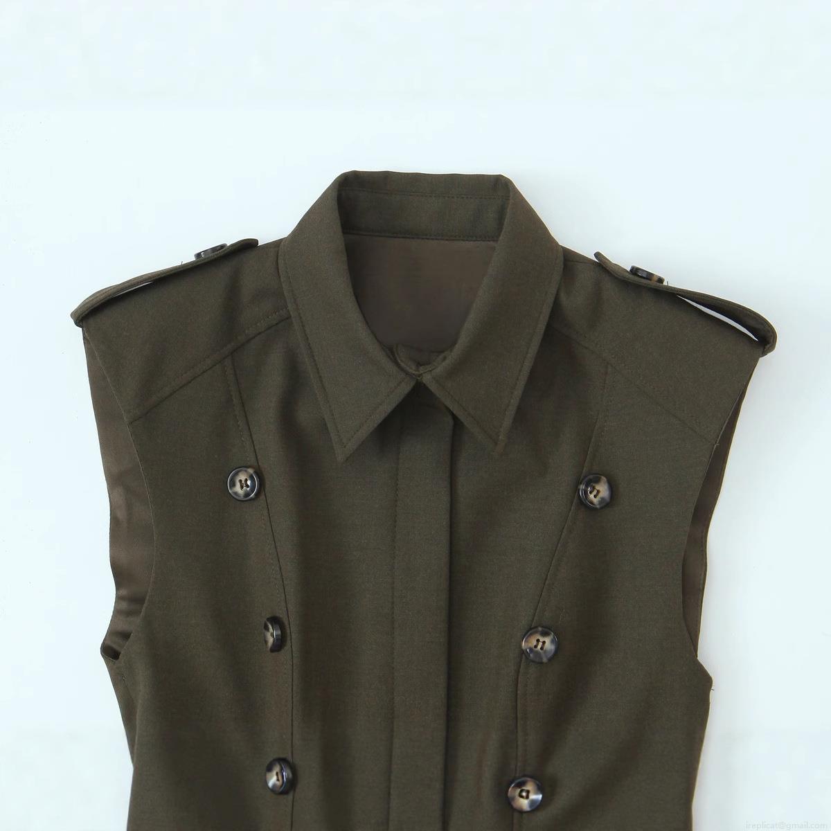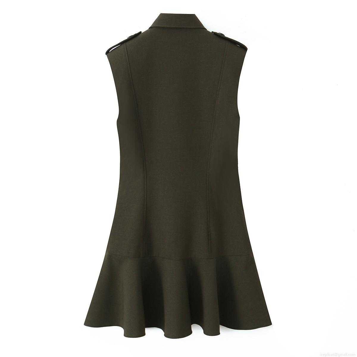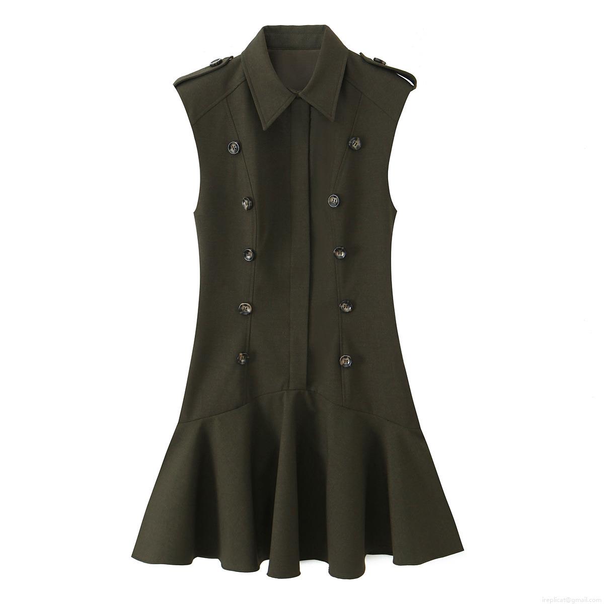 • Women Military Green Sleeveless Mini Dress Double Breasted Lapel Ruffle Hem Slim Fit Elegant Polyester Casual Commute Party Dress