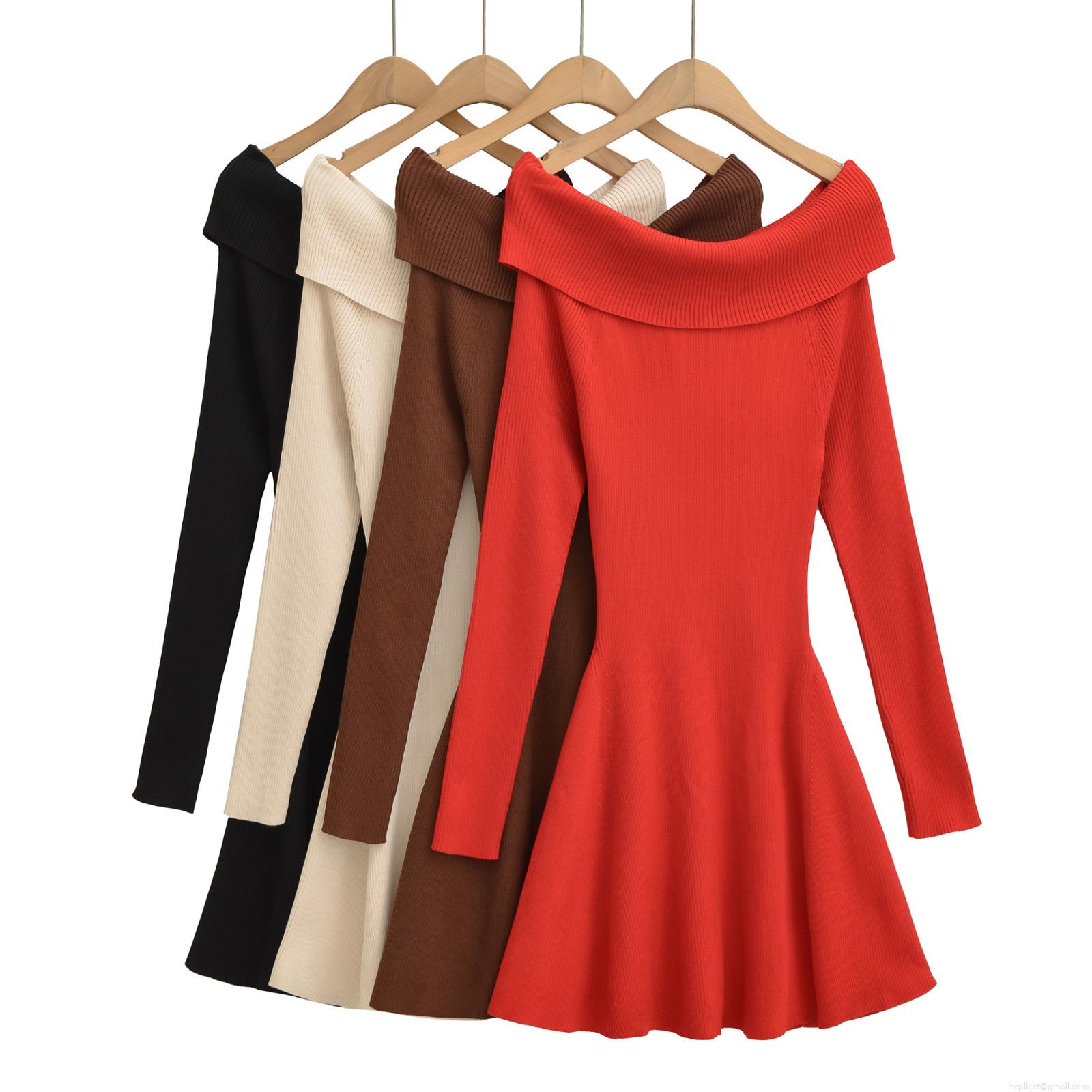 • Women Off-Shoulder Backless Bow Decoration Ribbed Knit Mini Dress Rayon Nylon Blend Long Sleeve Slim Fit A-Line Pullover Dress For Party Streetwear