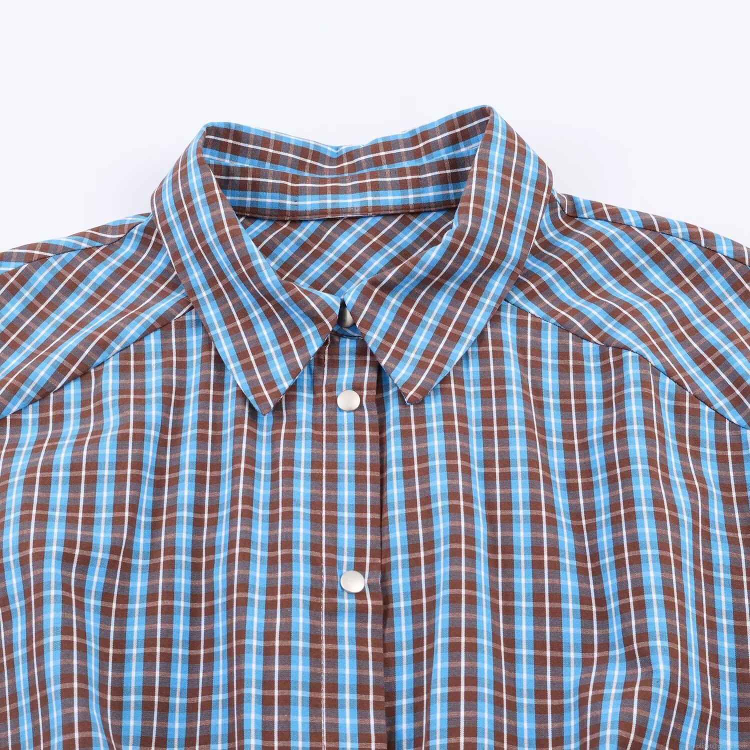 • Women Plaid Layered Mini Dress Long Sleeve Lapel Neck Belted Ruffle Hem Polyester Poplin Casual Western Style Checked Shirt Dress
