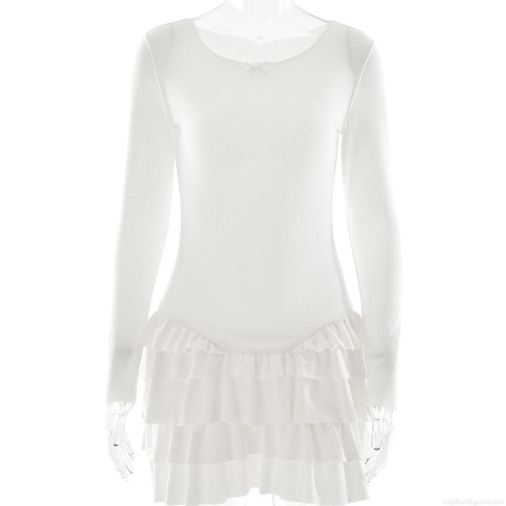 • Women Ruched Ruffle Mini Dress Ribbed Knit Long Sleeve Crew Neck Slim Fit Solid Color Sexy Bodycon Party Dress With Bow Tie For Women