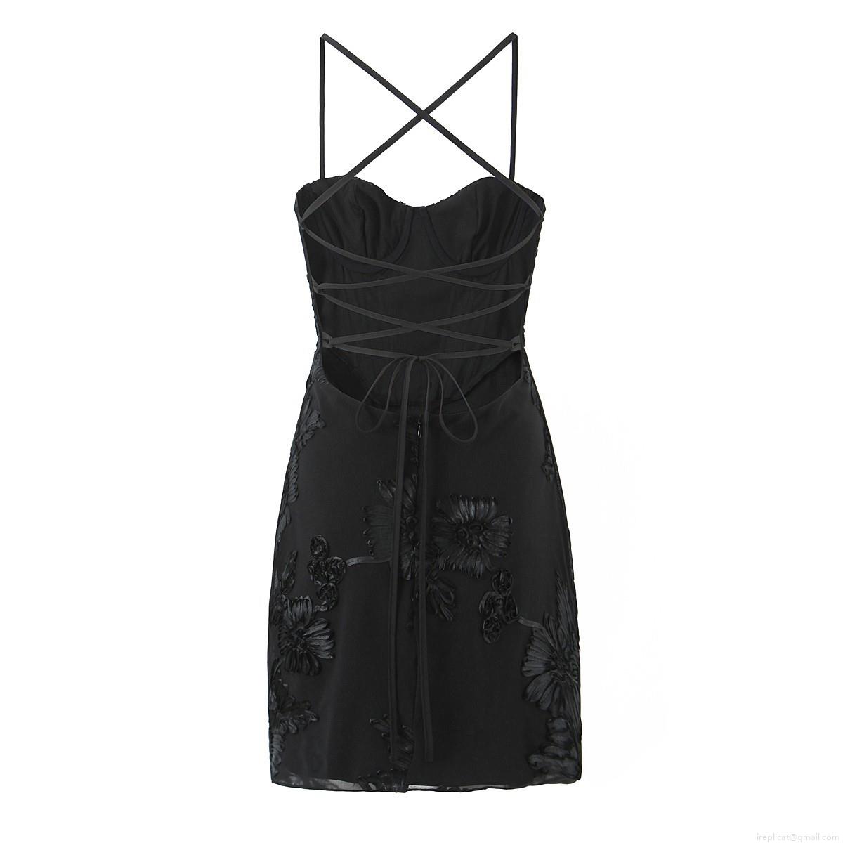 • Women Sexy 3D Flower Embroidery Boned Mini Dress Backless Lace Up Mesh Cami Dress With Underwire Elegant Party Clubwear Sweetheart Neck Evening Dress
