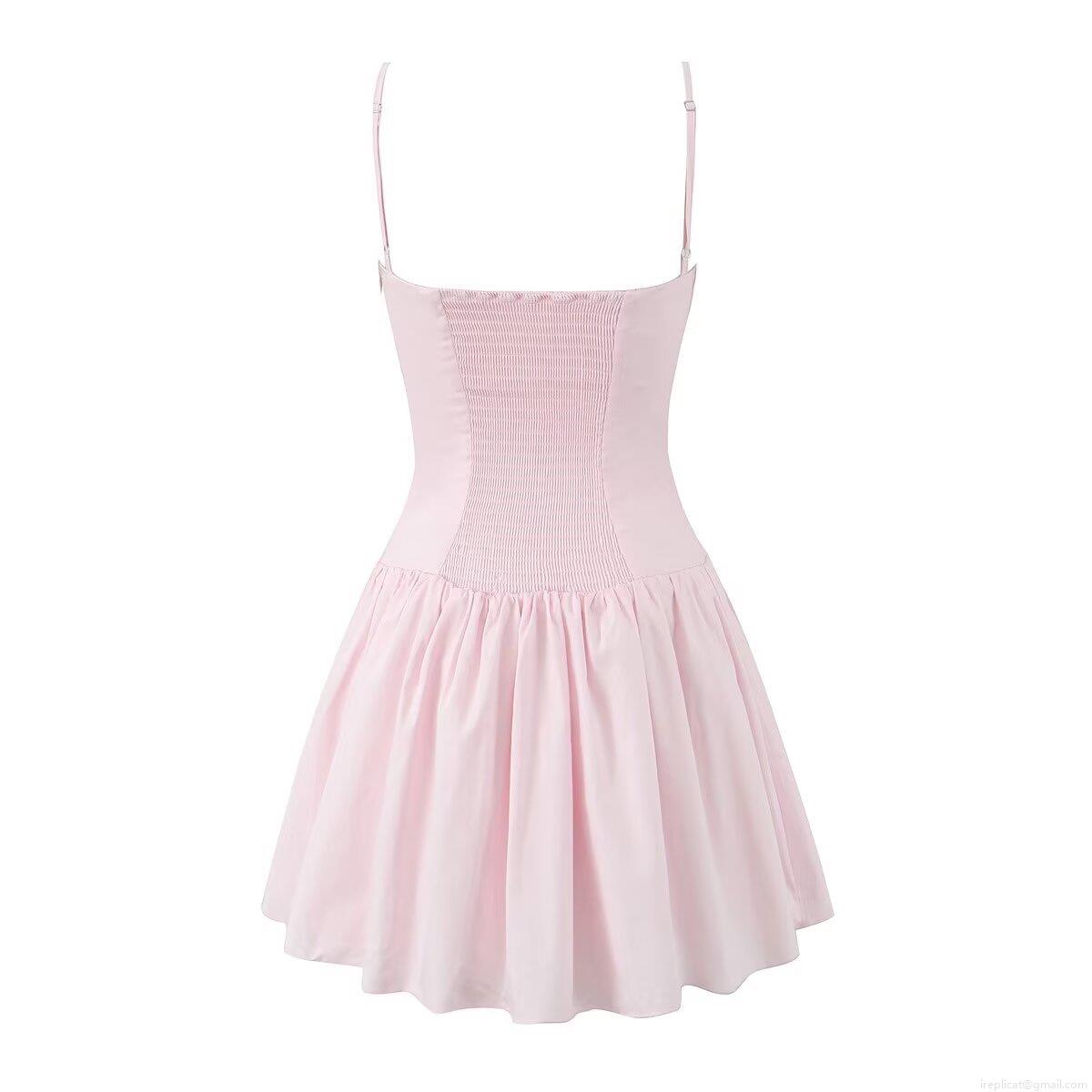 Solid Color, Hollow Out, Pleats, Straps, Gathering, A-line Style, Smocking