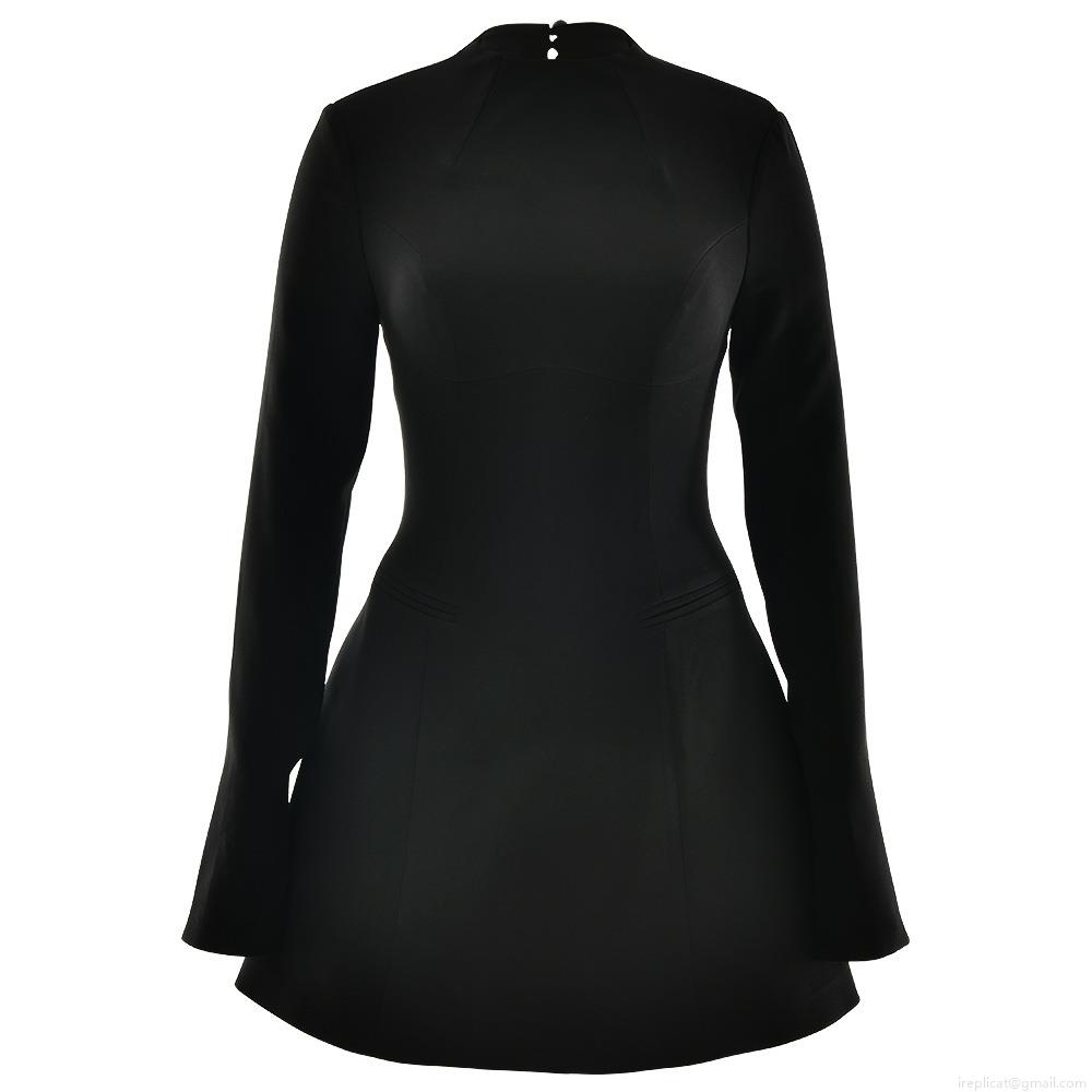 • Women Sexy Backless A-Line Mini Dress Long Sleeve Mock Neck Slim Waist Polyester Party Clubwear Elegant Streetwear Solid Color Fashion Dress