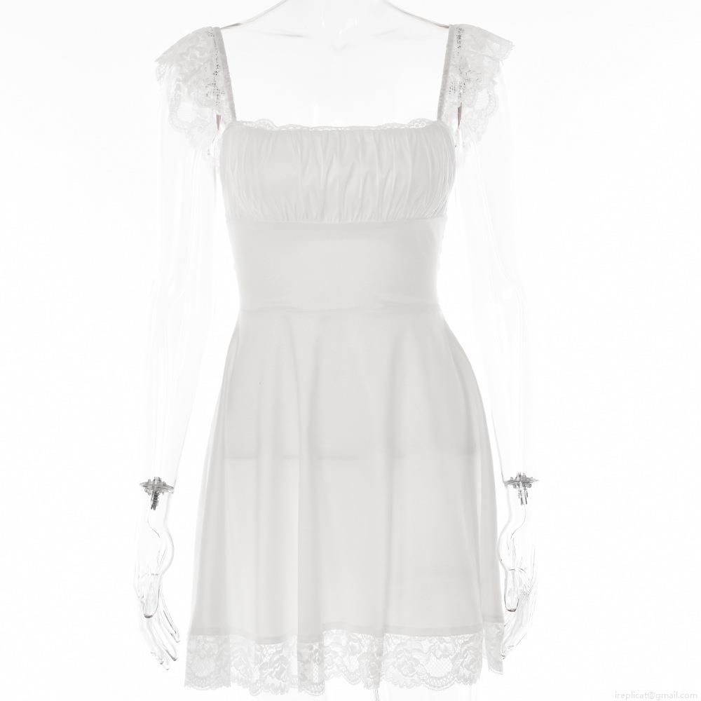 • Women Sexy Backless Mini Dress With Lace Trim A-Line Cami Dress Tie Back Sleeveless Bodycon Short Dress For Party Clubwear Summer