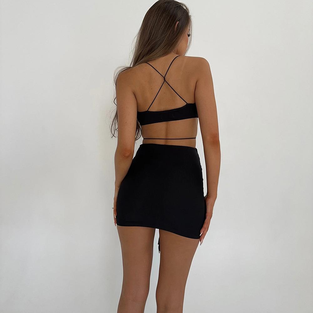 • Women Sexy Black Mini Dress Halter Neck Hollow Out Lace Up Bodycon Dress Ruffle Edge Polyester Mesh Party Clubwear Sleeveless Skinny Outfits