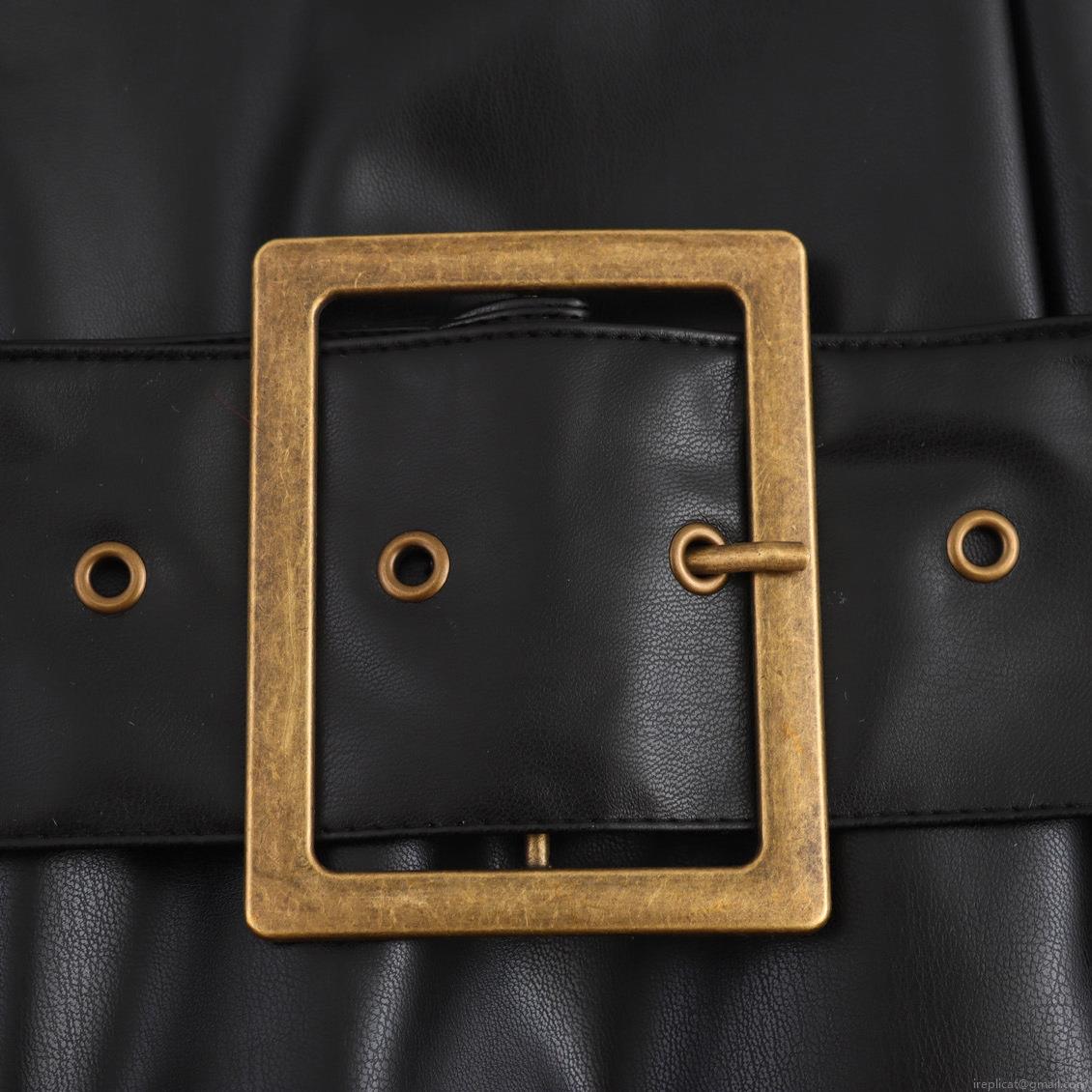 Solid Color, Gold Square Buckle, Wide Belt, Side Fork, Metal Air Vent, Strapless Design