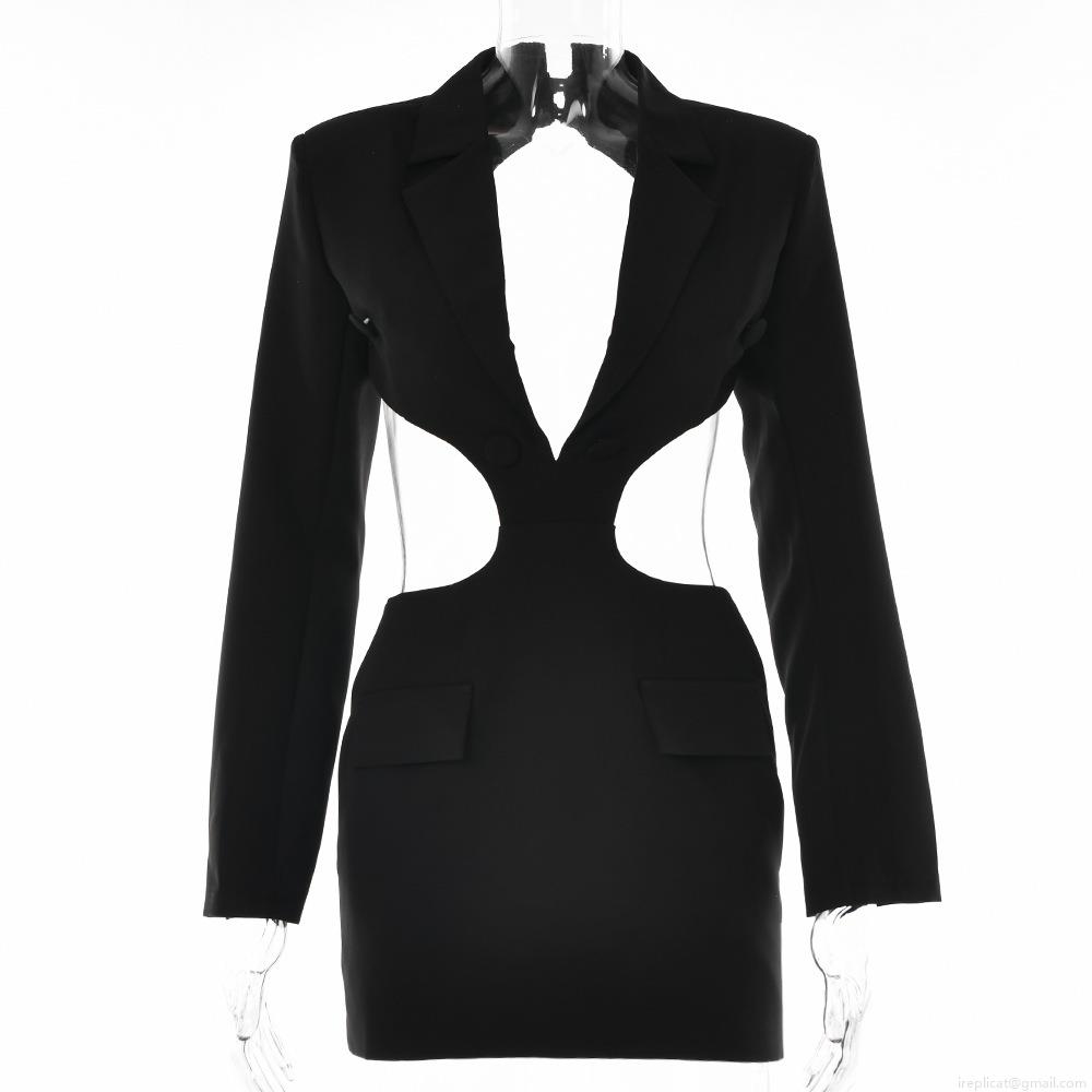 • Women Sexy Cut-out Blazer Dress Contrast Color Deep V Neck Backless Long Sleeve Mini Dresses Fashion Streetwear Party Evening Club Outfits