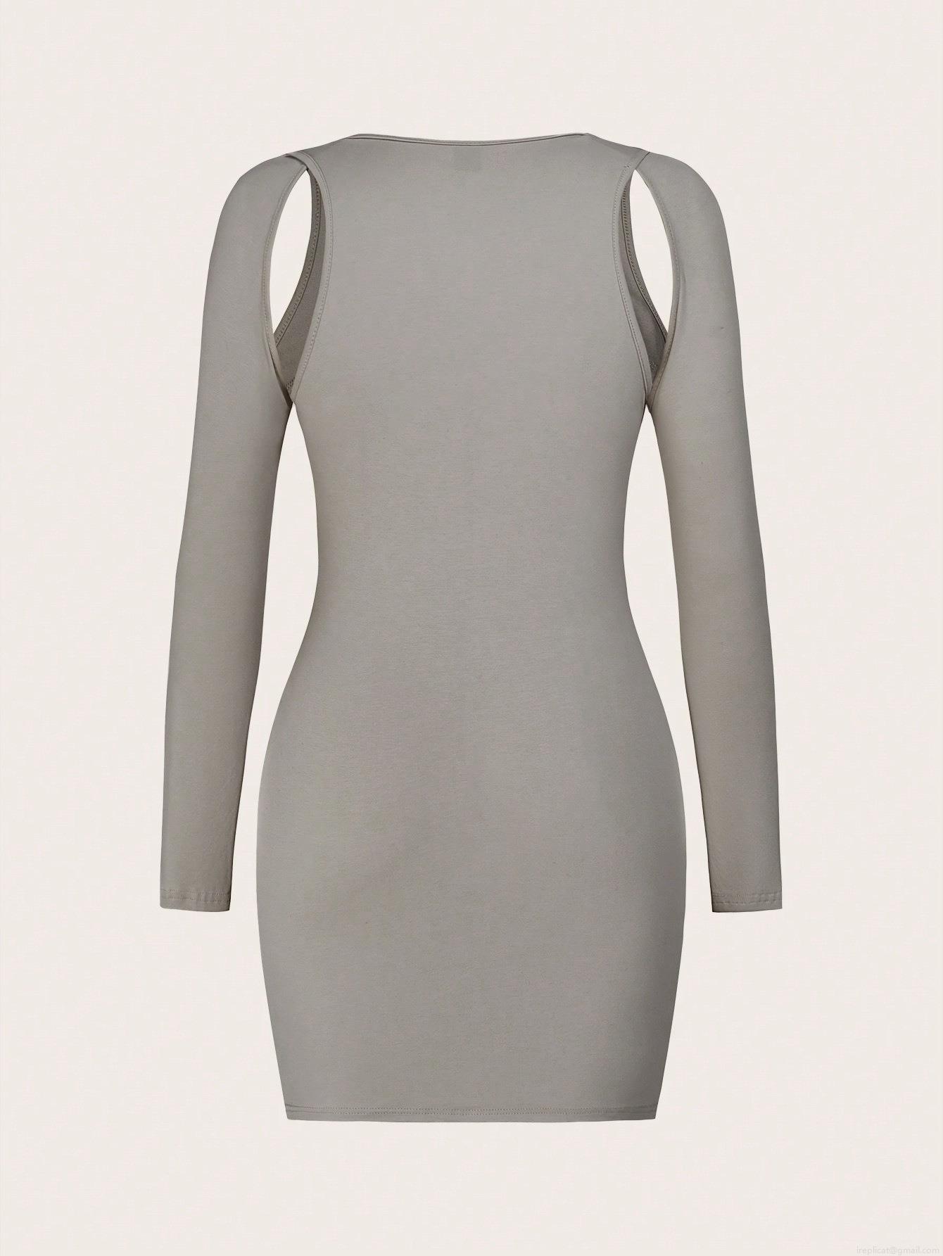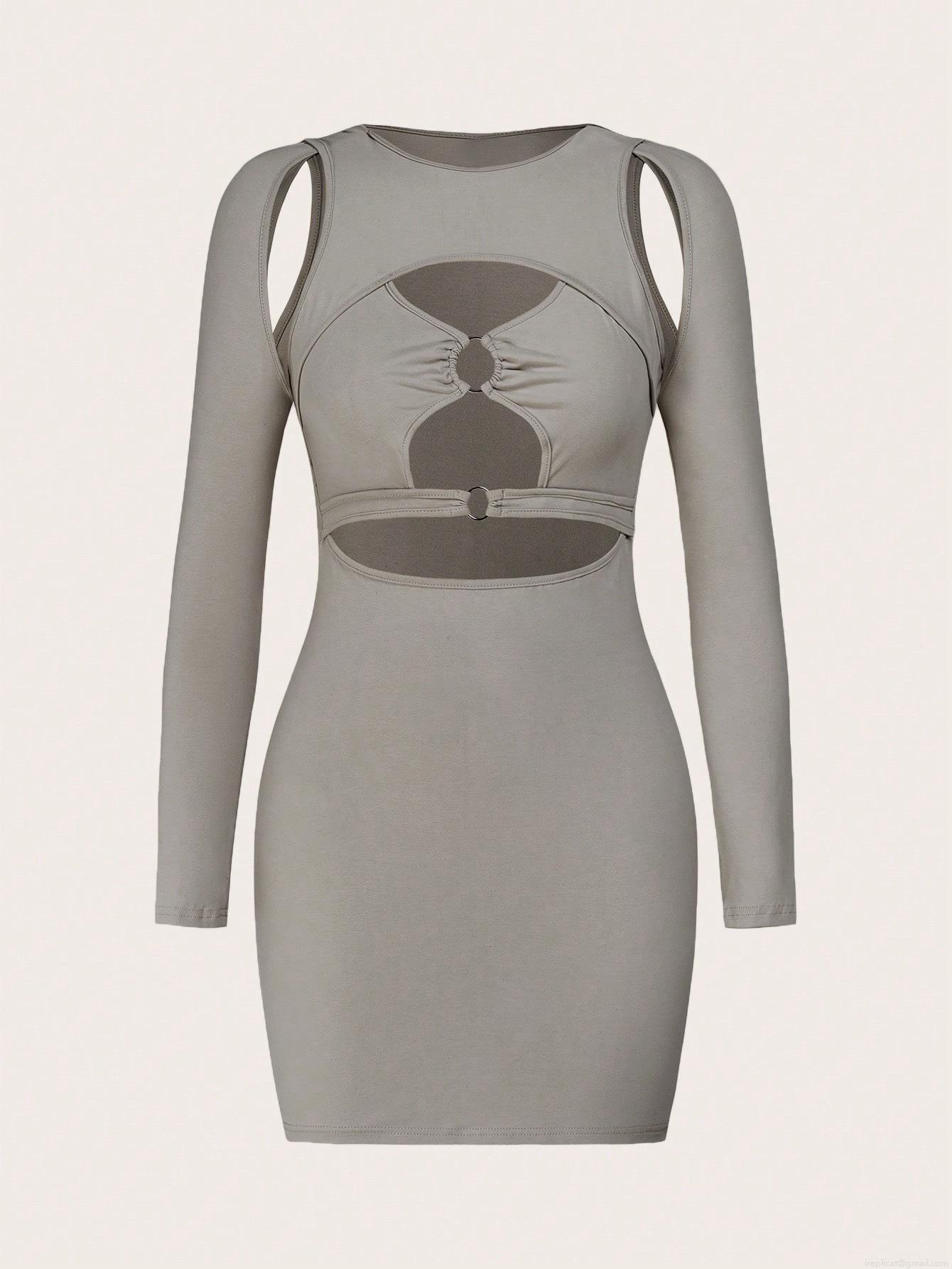 • Women Sexy Cutout Mini Dress Long Sleeve Bodycon Dress Polyester Spandex Milk Silk Slim Fit Clubwear Party Dress with Metal Ring Detail