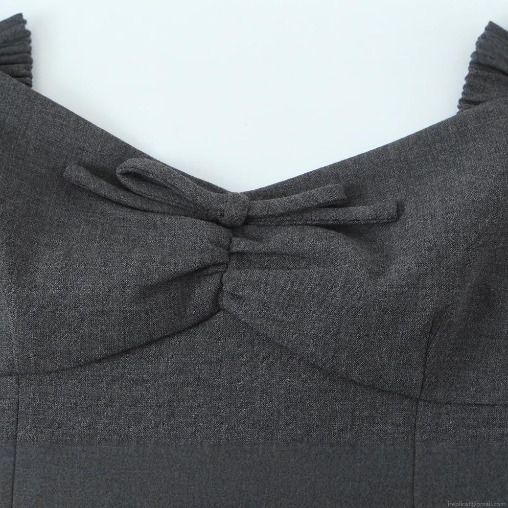 Women Sexy Dark Grey Spaghetti Strap Mini Dress With Bow Knot V Neck Ruffle Hem Solid Color Slim Fit Polyester Sleeveless Party Dress