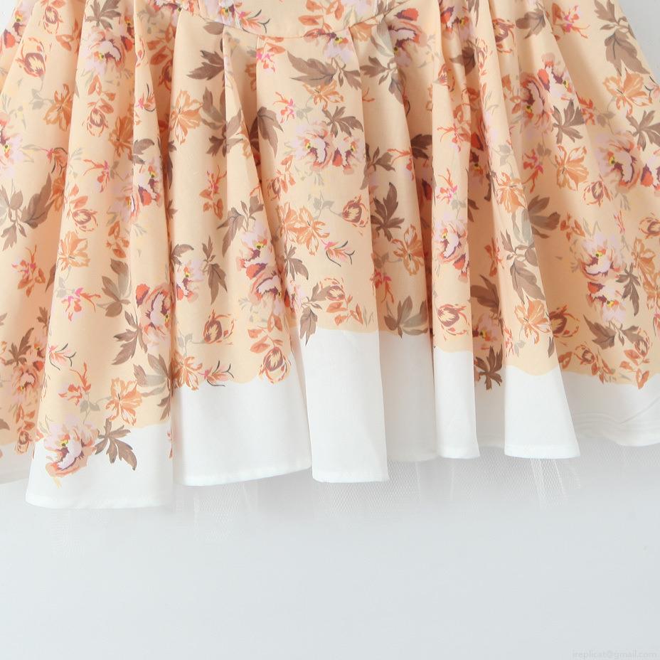 Fishbone, Digital, Floral Pattern, Plants And Flowers, Pleats, Puff Sleeves, White Ruffles