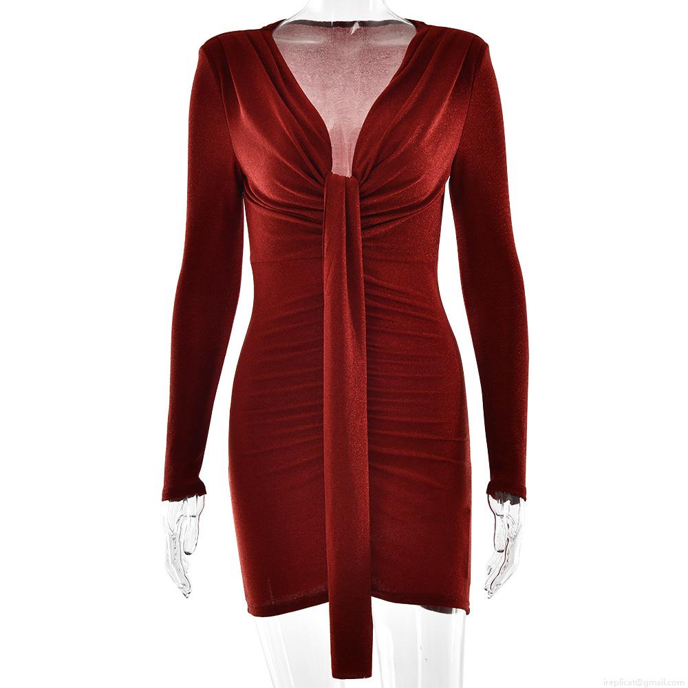 • Women Sexy Deep V Neck Long Sleeve Ruched Bodycon Dress Glitter Polyester Mini Dress Elegant Party Night Club Slim Fit Shiny Wrap Dress