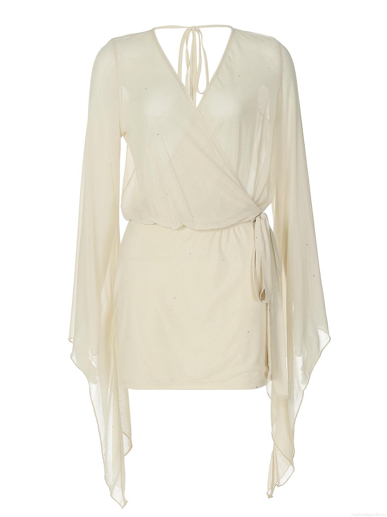 • Women Sexy Deep V Neck Mesh Sequin Mini Dress Long Bell Sleeve Backless Wrap Party Clubwear Bodycon Dress For Women