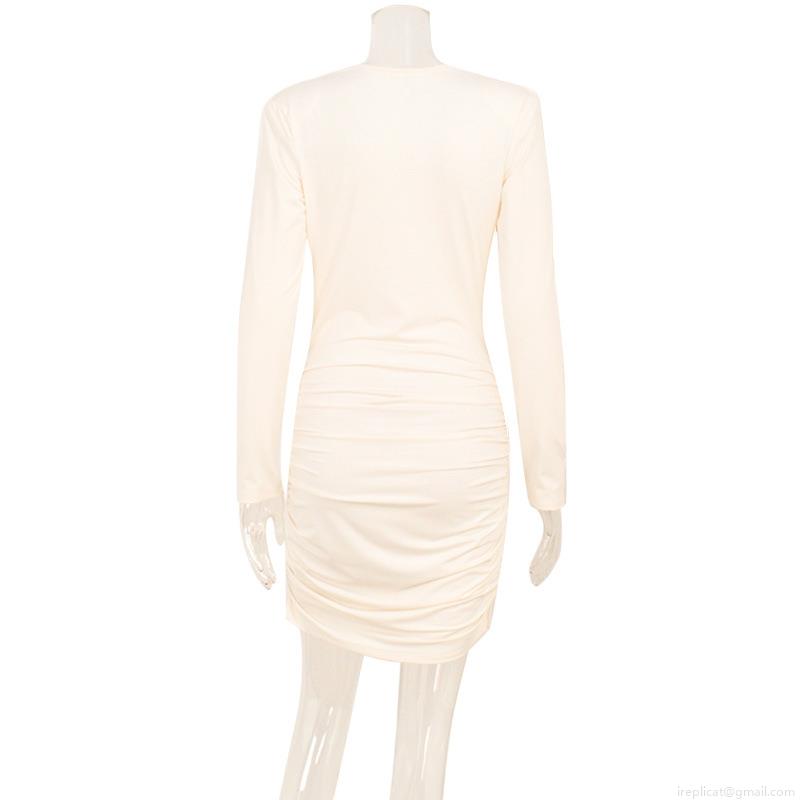 • Women Sexy Deep V Neck Ruched Bodycon Dress Elegant Padded Shoulder Long Sleeve Mini Party Dress Solid Color Cowl Neck Slim Fit Evening Club Dress