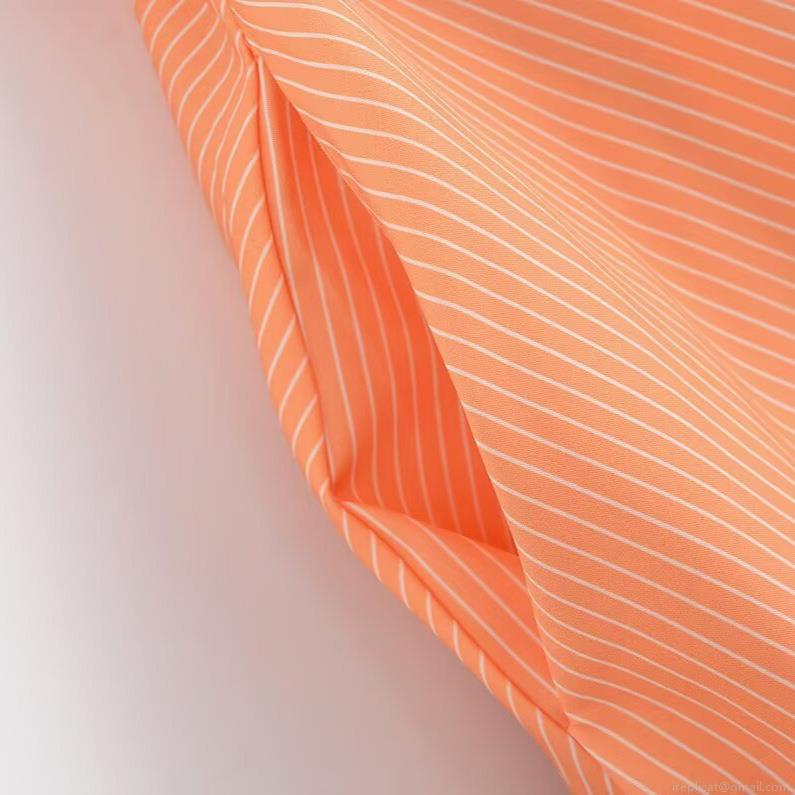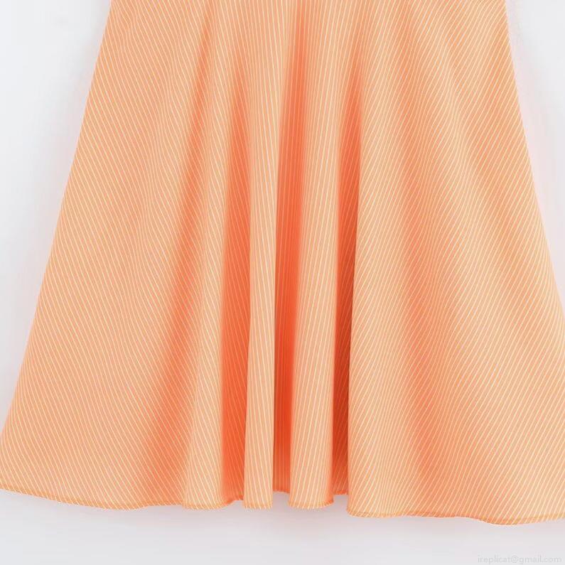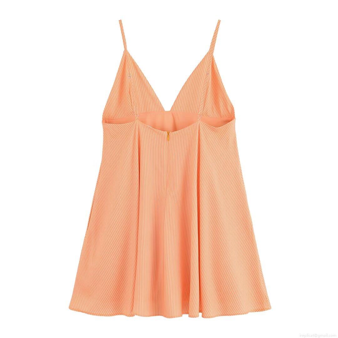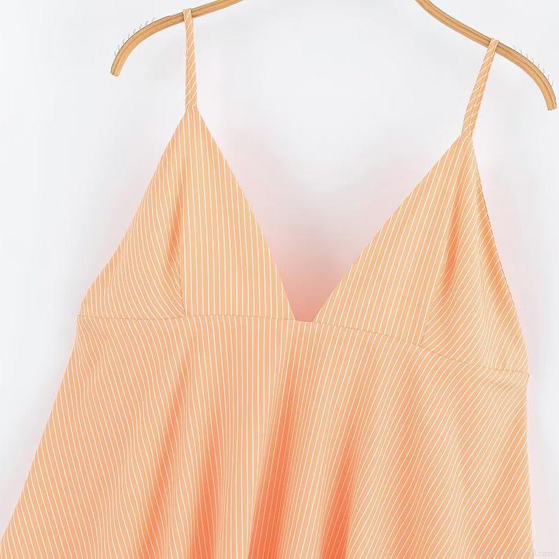 • Women Sexy Deep V Neck Spaghetti Strap Mini Dress Summer Orange White Vertical Striped Backless A-Line Polyester Spandex Beach Party Sundress