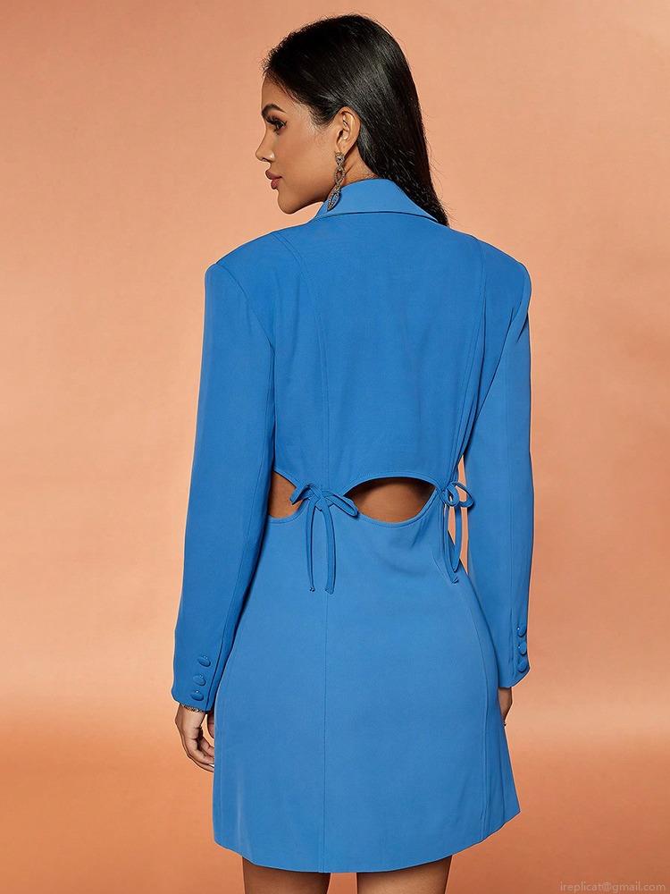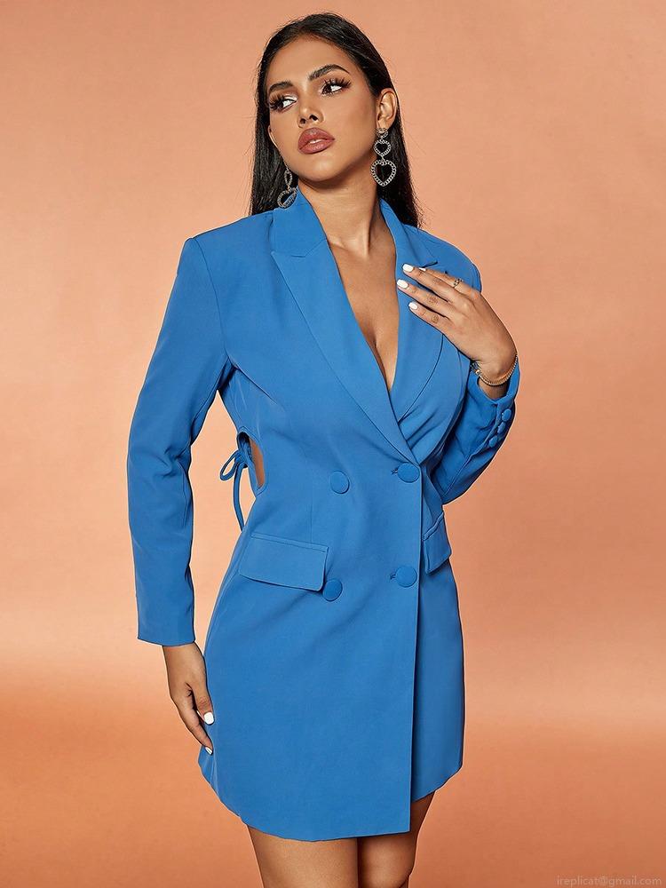 • Women Sexy Double Breasted Cutout Tie Back Blazer Dress V Neck Long Sleeve Solid Color Slim Fit Mini Dress Office Career Streetwear