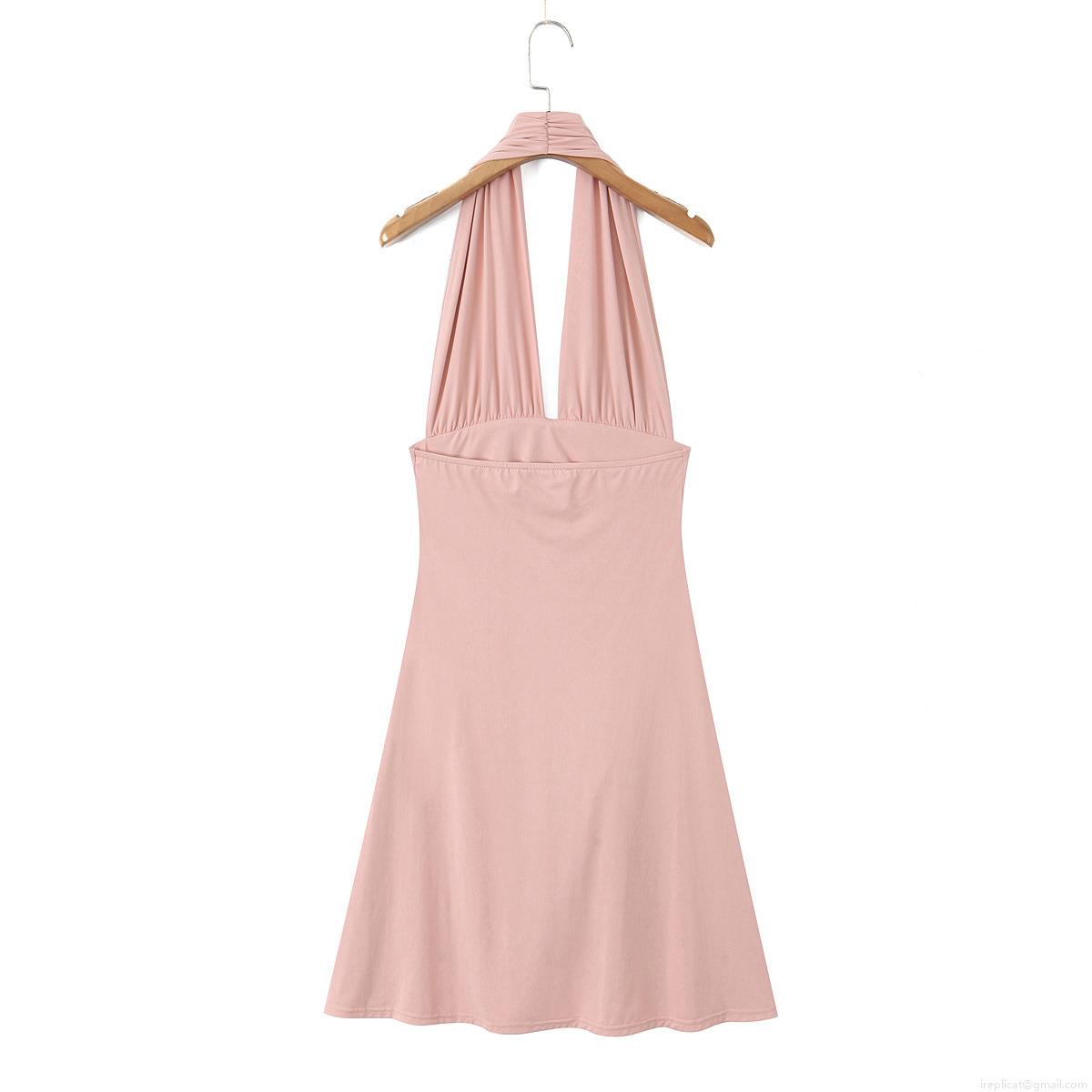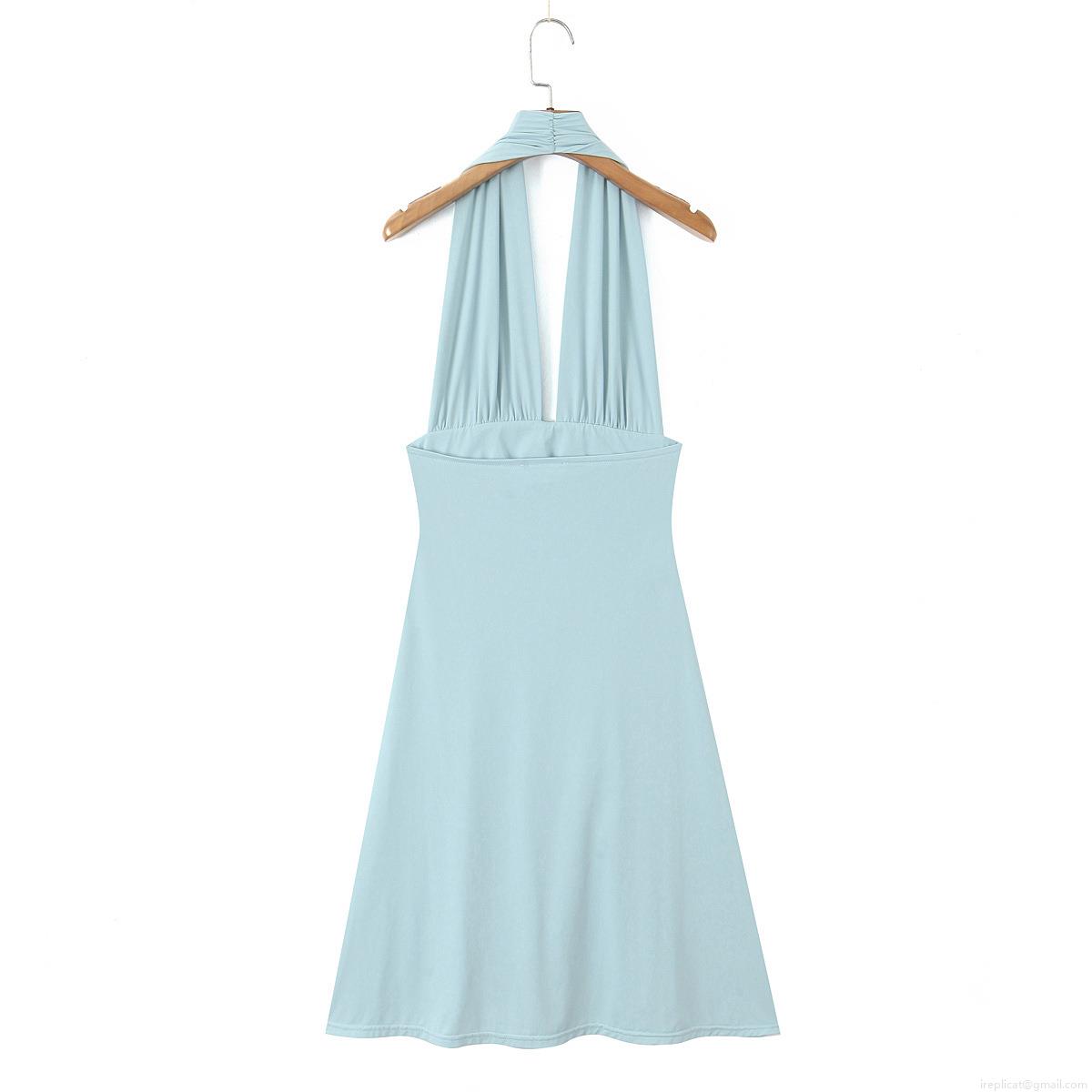 • Women Sexy Halter Deep V-Neck Mini Dress Nylon Spandex Irregular Ruffle Hem Sleeveless Backless Summer Beach Party Vacation Dresses
