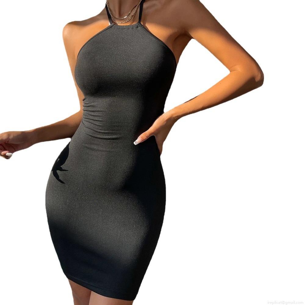 • Women Sexy Halter Neck Backless Lace Up Bodycon Mini Dress Knitted Sleeveless Slim Fit Party Clubwear Short Dress for Summer
