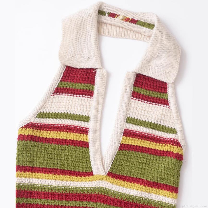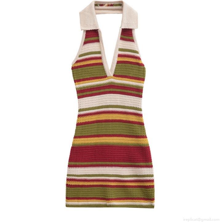 • Women Sexy Halter Neck Knit Mini Dress Multicolor Striped Backless Crochet Bodycon Sundress V Neck Retro Bohemian Style Summer Party Club Outfits