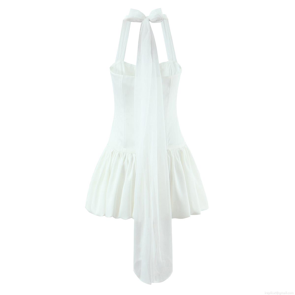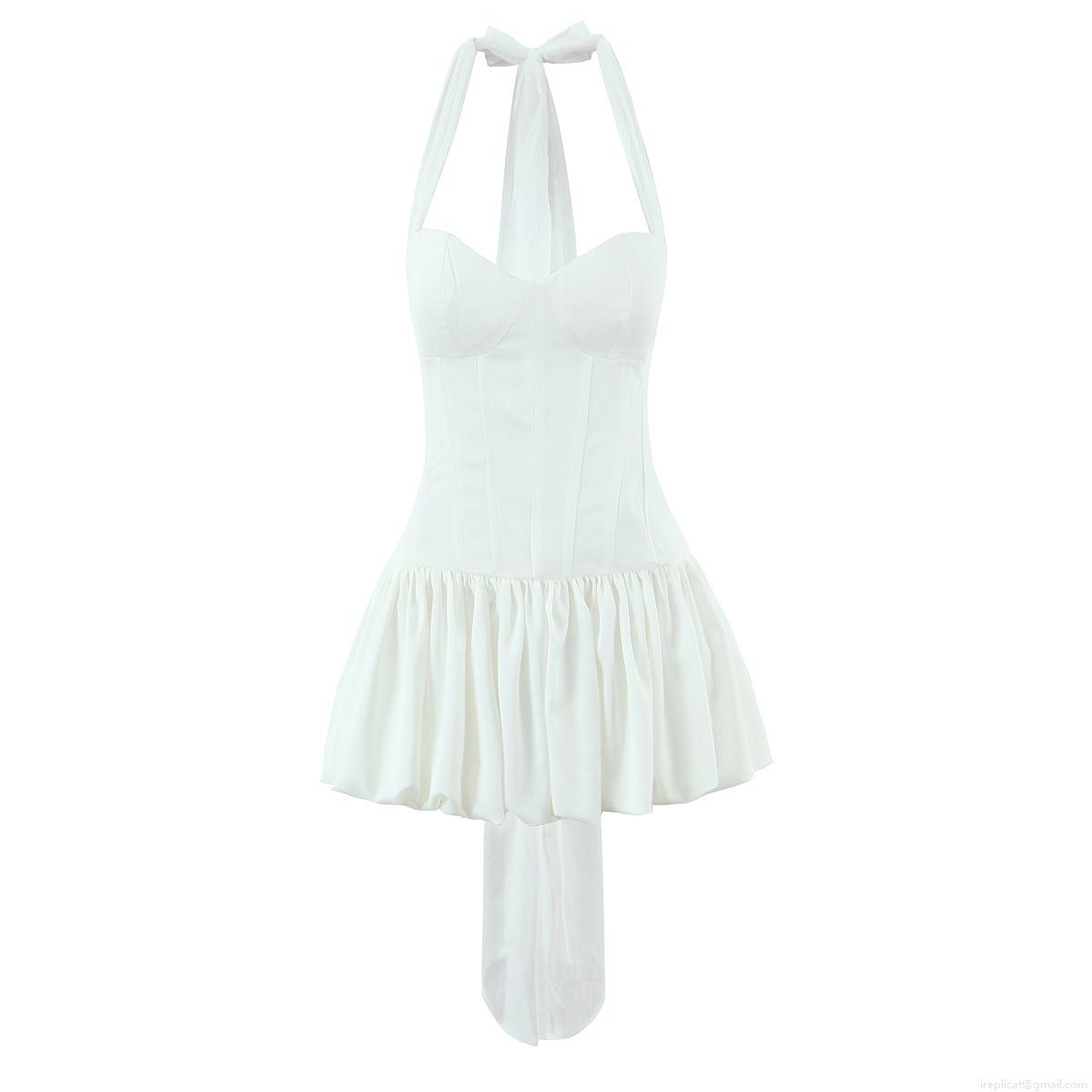 • Women Sexy Halter Neck Mini Dress With Boning Corset Chiffon Tie Backless Polka Dot A-Line Sleeveless Party Vacation Dress For Women