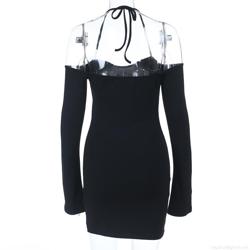 • Women Sexy Halter Neck Off Shoulder Long Sleeve Bodycon Mini Dress Knitted Solid Color Side Slit Skinny Clubwear Party Dress For Women
