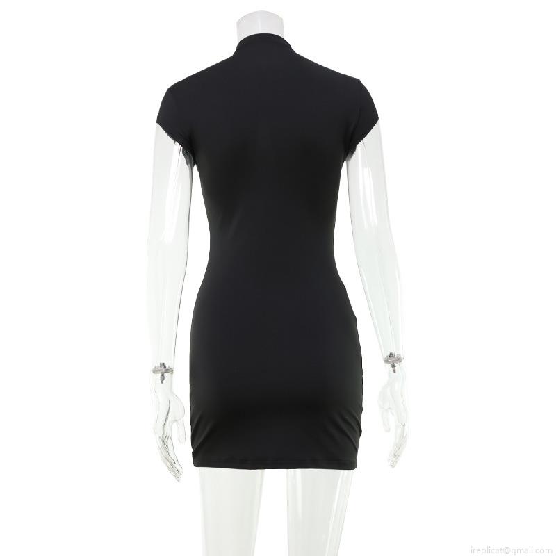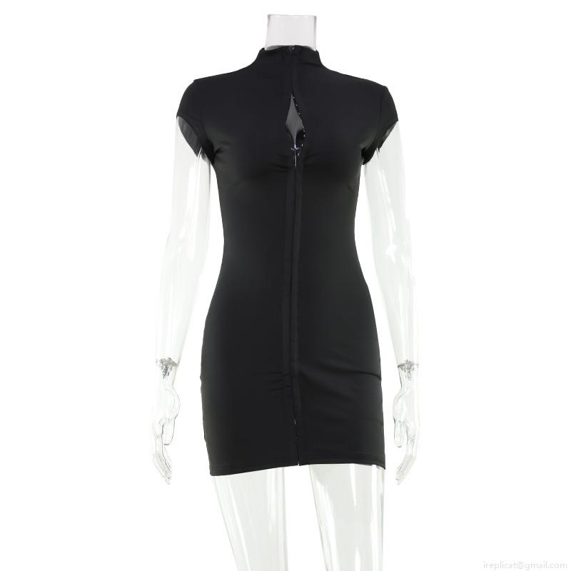 • Women Sexy Hollow Out Bodycon Mini Dress Stand Collar Front Metal Zipper Slim Fit Short Sleeve Club Party Polyester Spandex Dress