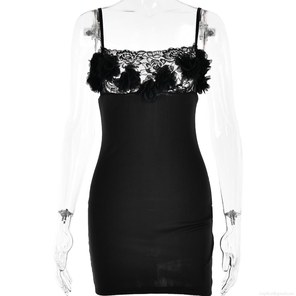 Women Sexy Lace Patchwork Cami Mini Dress 3D Floral Backless Bodycon Party Clubwear Streetwear Night Out Polyester Spandex Chic Short Dress