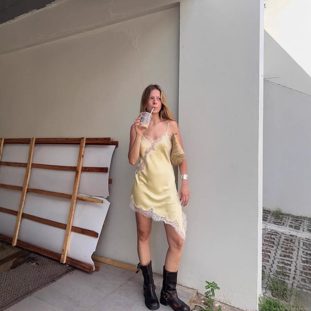 • Women Sexy Lace Patchwork Satin Camisole Dress Asymmetric Hem V Neck Sleeveless Backless Mini Slip Dress For Summer Party Clubwear