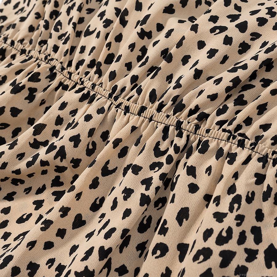 Leopard Print, Ruffles, Puff Sleeves, Deep V, Ribbon Bow