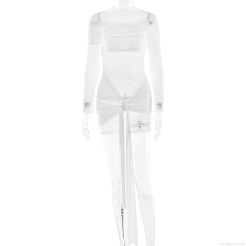 • Women Sexy Mesh Polyester Spandex See-Through Mini Dress Long Sleeve Off-the-Shoulder Ruched Bodycon Dress Twist Waist Autumn Bodycon Club Party Dress