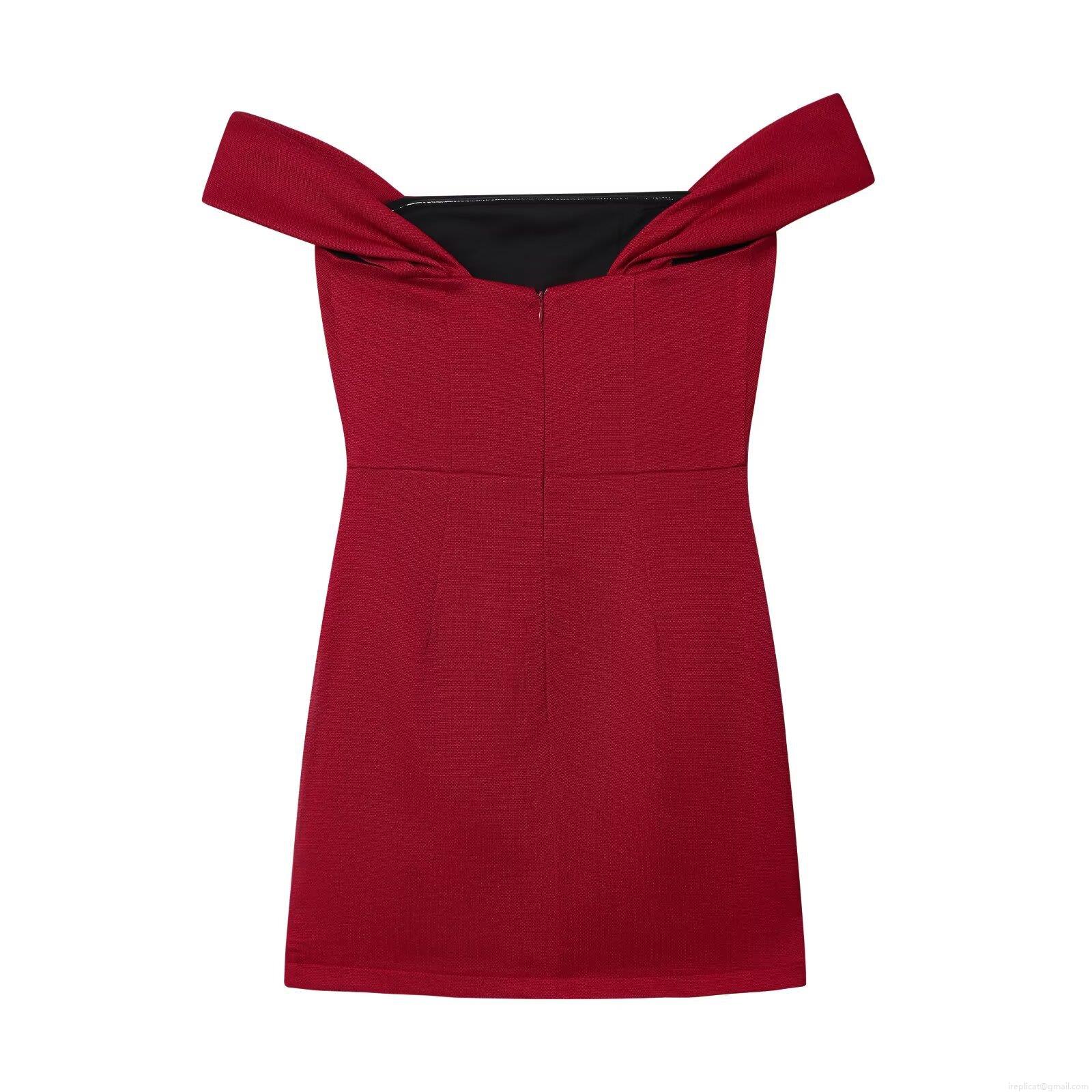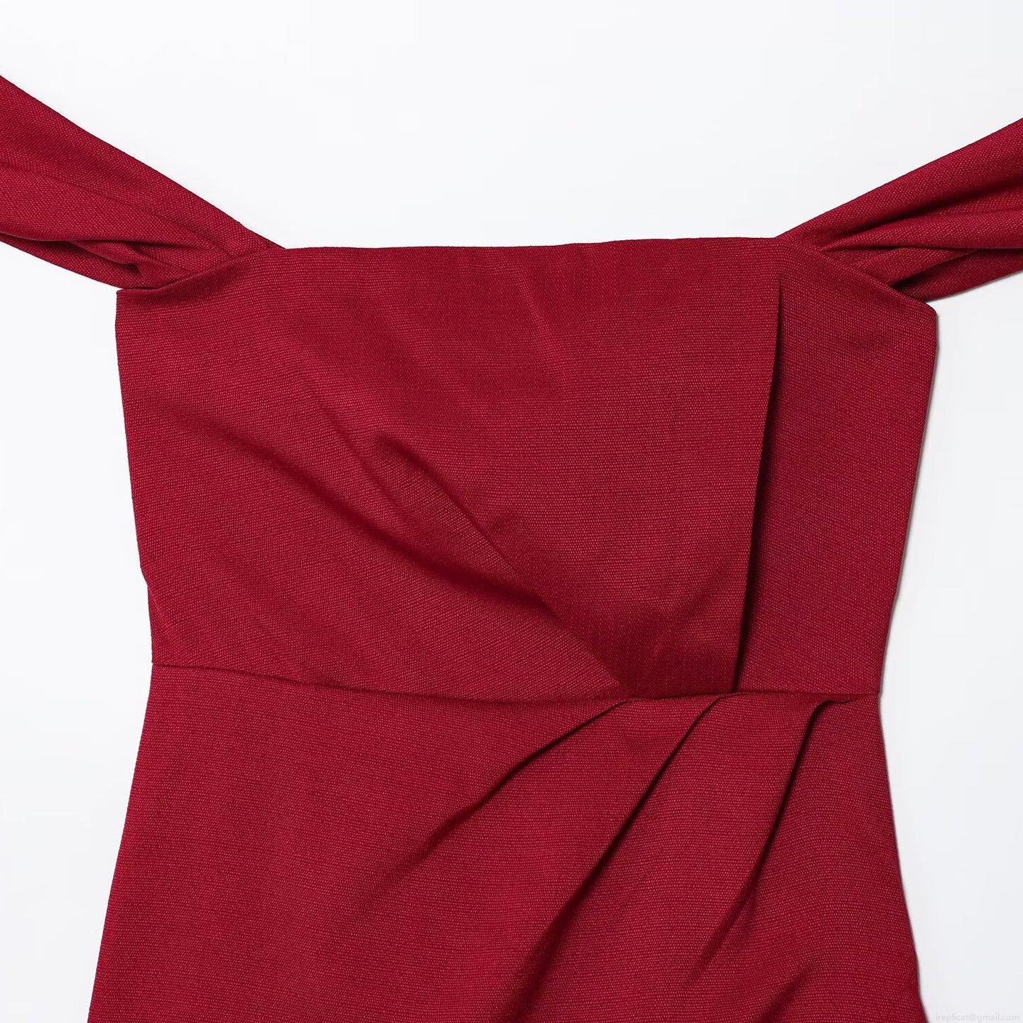 Solid Color, Off-shoulder, Off-the-shoulder Neckline, Pleated Decoration, Concealed Zipper On The Back