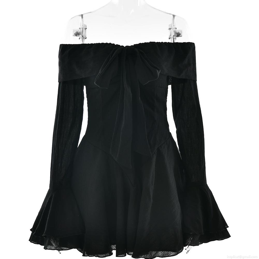 • Women Sexy Off-the-Shoulder Flare Sleeve Dress Polyester Cotton Blend High Waist A-Line Mini Dress With Bowknot Decor For Party Club Streetwear