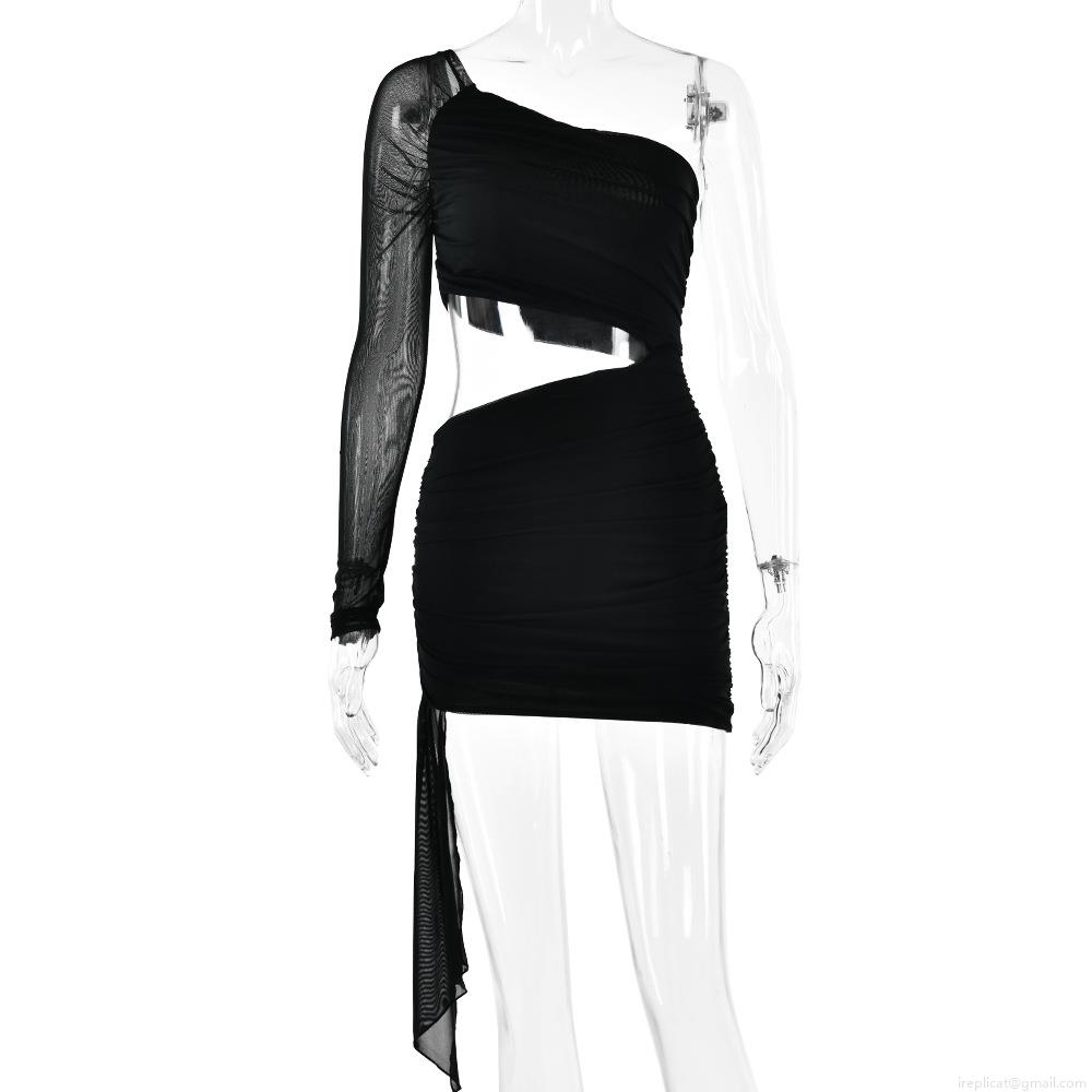 • Women Sexy One Shoulder Cutout Mini Dress Long Sleeve Ruched Bodycon Party Club Dress Solid Color Polyester Slim Fit Wrap Dress