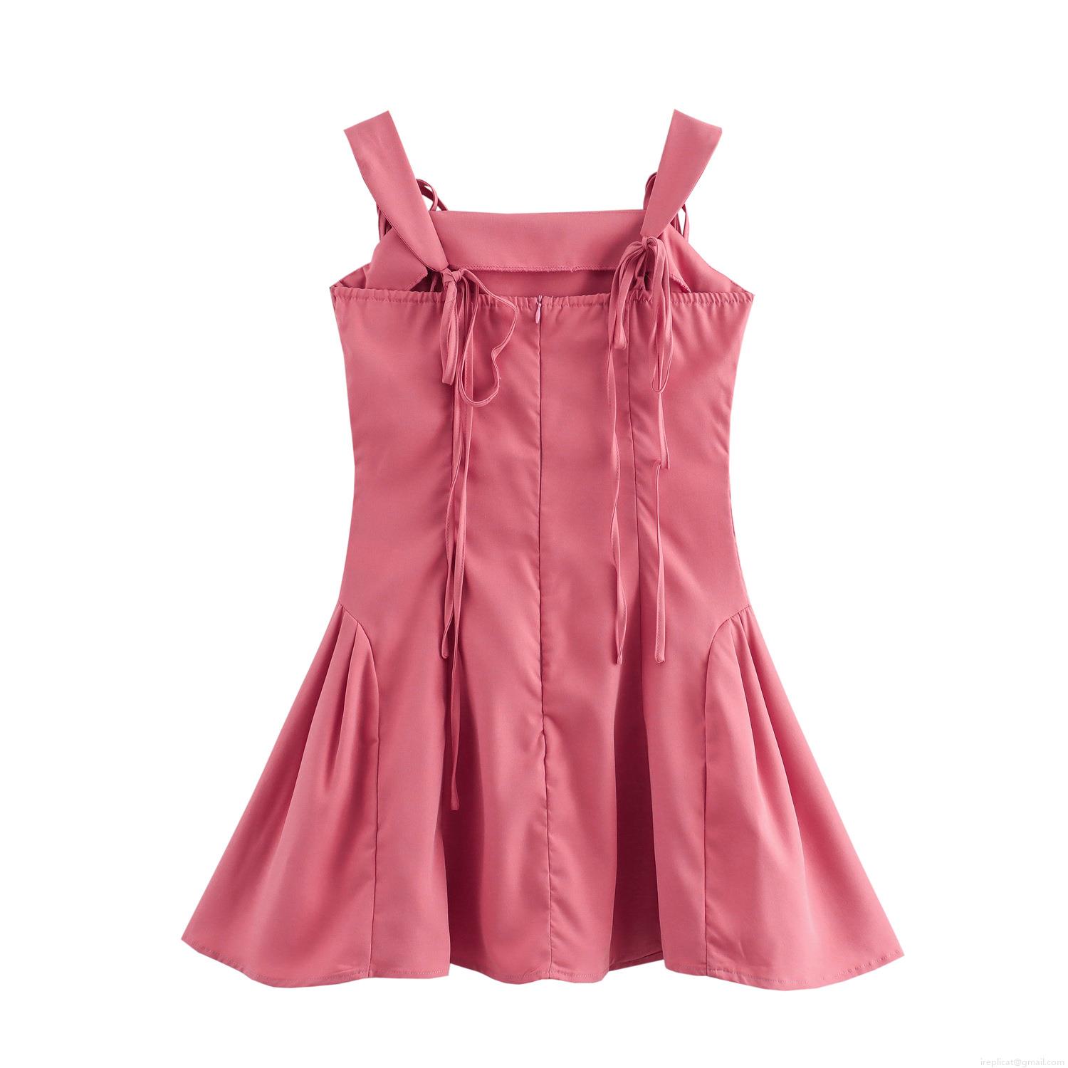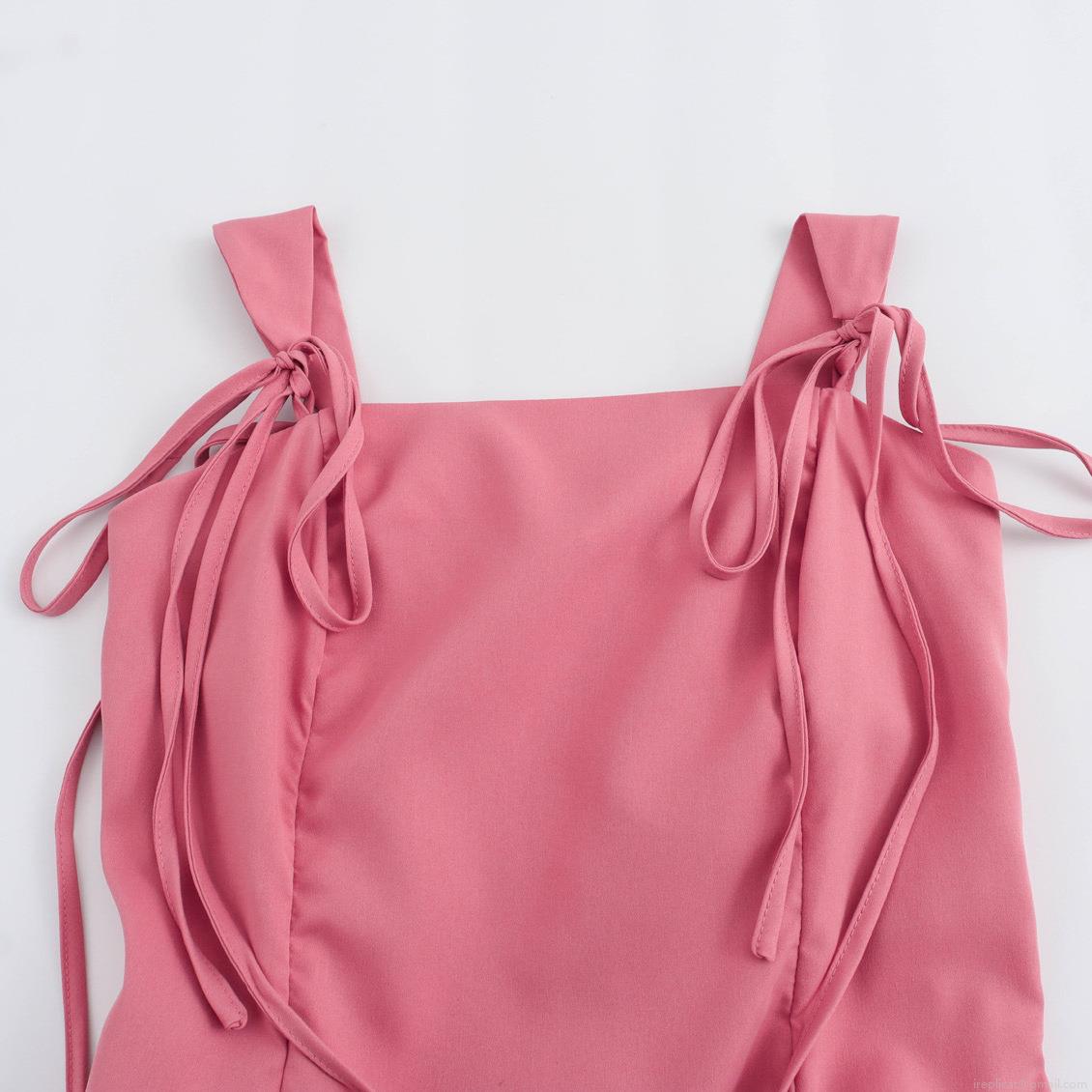 • Women Sexy Pink Square Neck Camisole Mini Dress Bow Shoulder Straps Backless Lace Up A-Line Short Dress For Summer Vacation Party