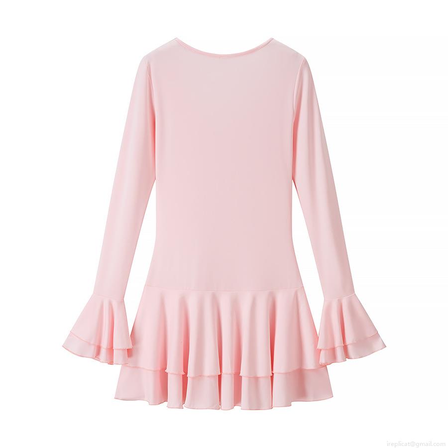 • Women Sexy Pink V Neck Long Flare Sleeve Mini Dress Ruffle Layered Hem Single Breasted Bodycon Party Dress Elegant Cocktail Clubwear Dress Polyester