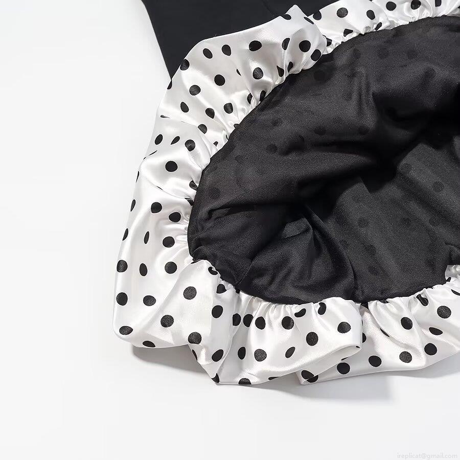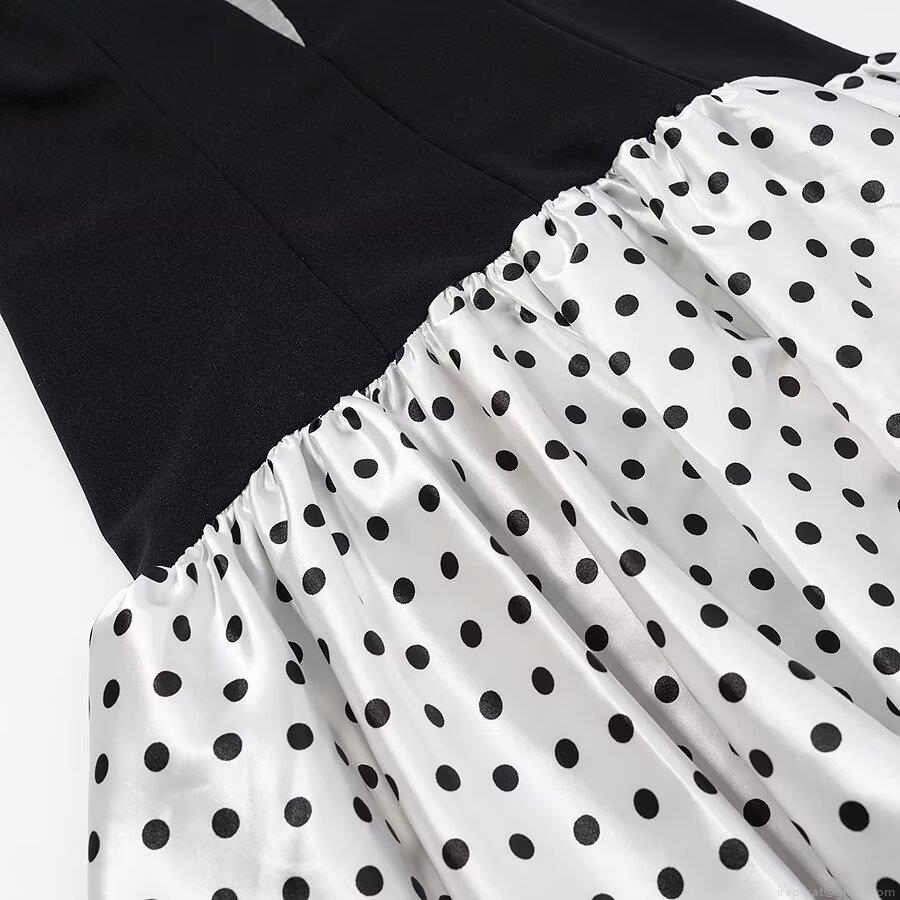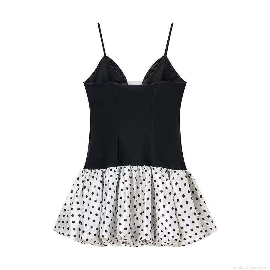 • Women Sexy Polka Dot Spaghetti Strap Mini Dress Deep V Neck Mesh Patchwork Slim Fit A-Line Party Dress Polyester Black White Sleeveless Dress