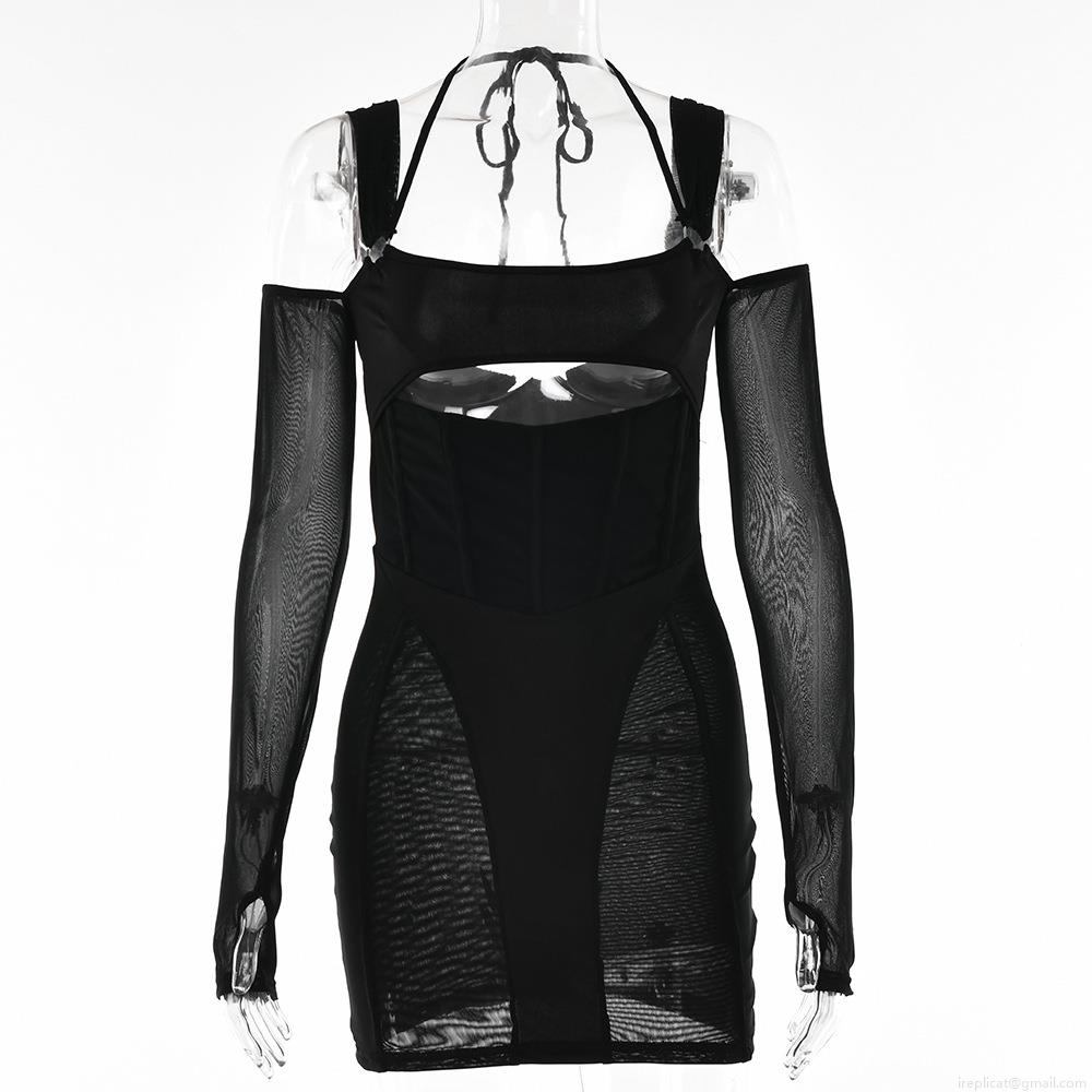 Hollow Design, Halter Neck Strap, Fishbone Shaping Structure, Fingerless Sleeves