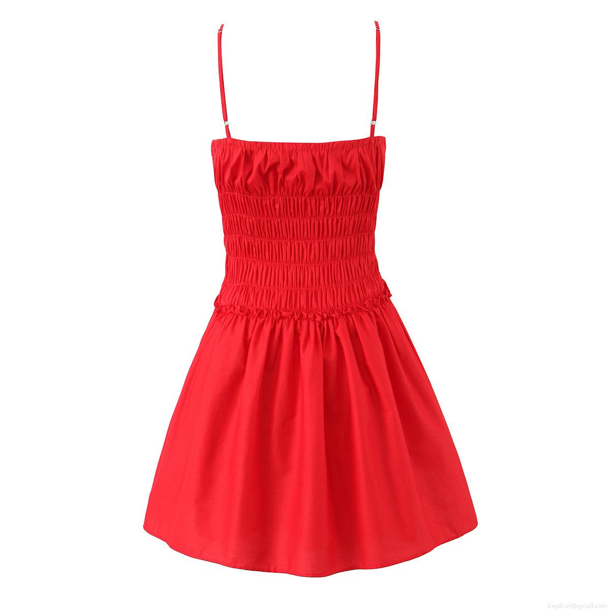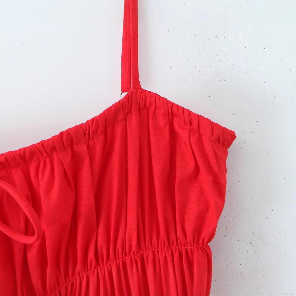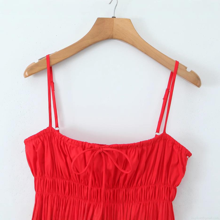 • Women Sexy Red Off-the-shoulder Spaghetti Strap Mini Dress Smocked Pleated With Bow Tie Sleeveless Summer Party Streetwear Solid Color Polyester Dress