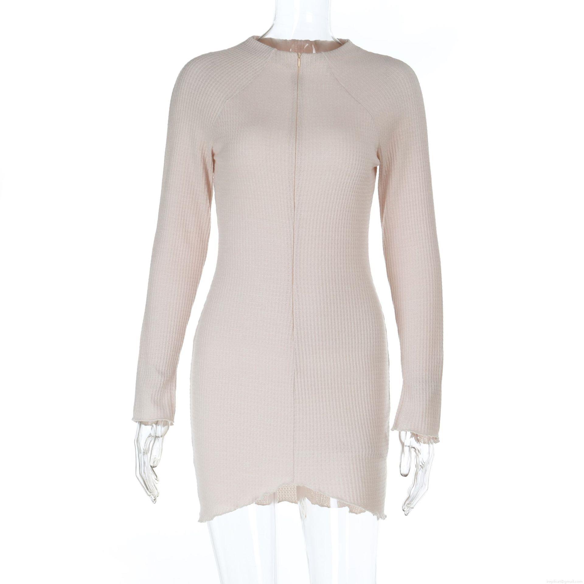 • Women Sexy Ribbed Knitted Mini Dress Long Sleeve Slim Fit Bodycon Dress With Half Zip Stand Collar Lettuce Hem Autumn Streetwear Short Dress