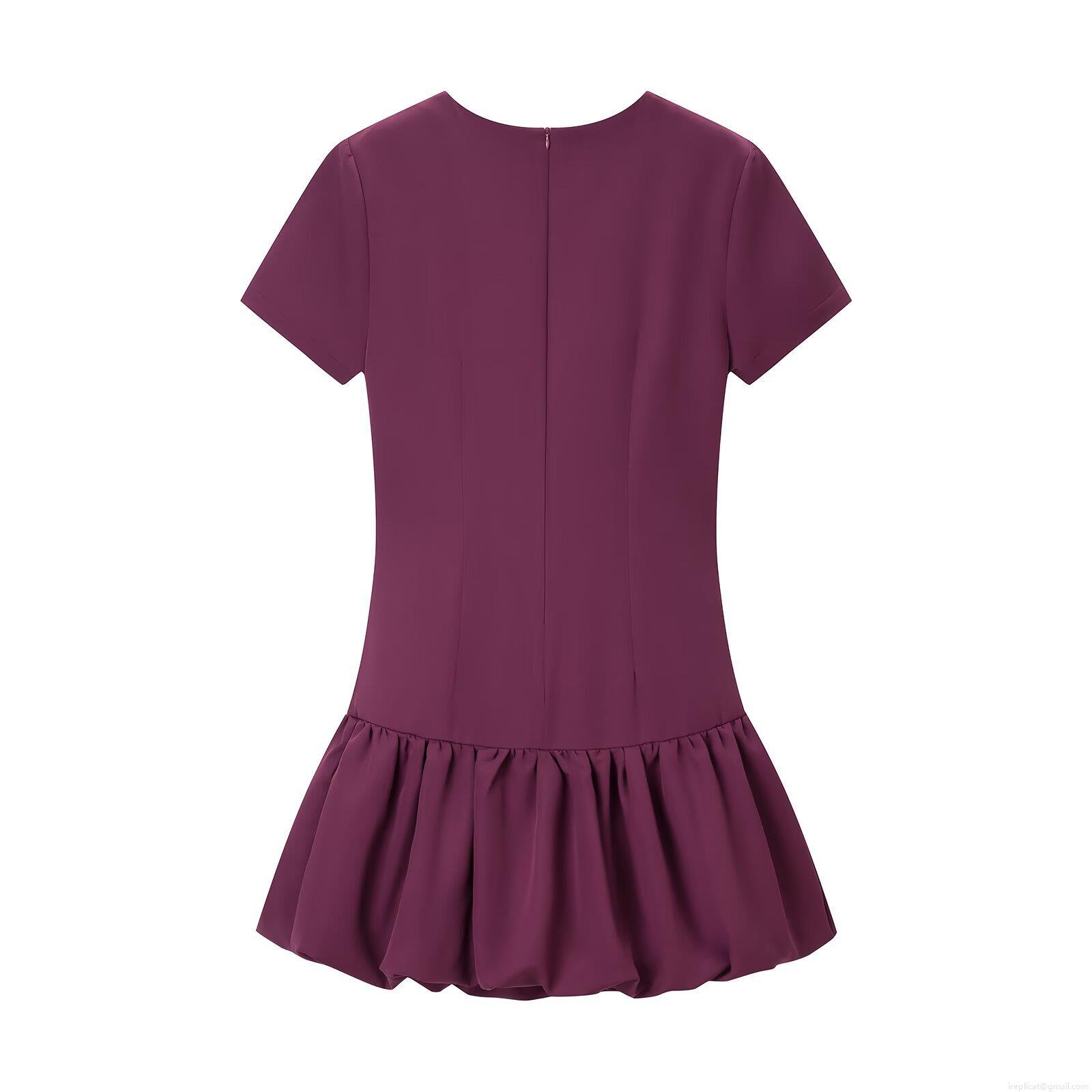 • Women Sexy Round Neck Short Sleeve Mini Dress High Waist Side Ruched Balloon Hem Solid Color Polyester Ruched Bodycon Party Cocktail Dress For Ladies