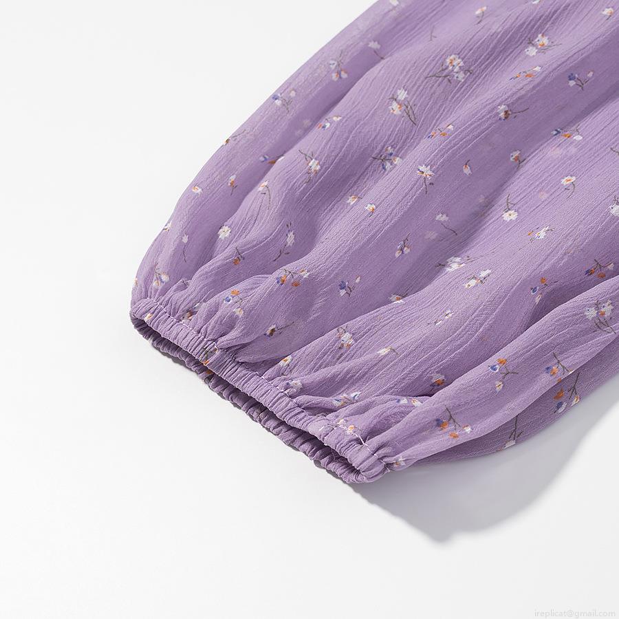 Floral Pattern, Gathering, Puff Sleeves, Square Collar