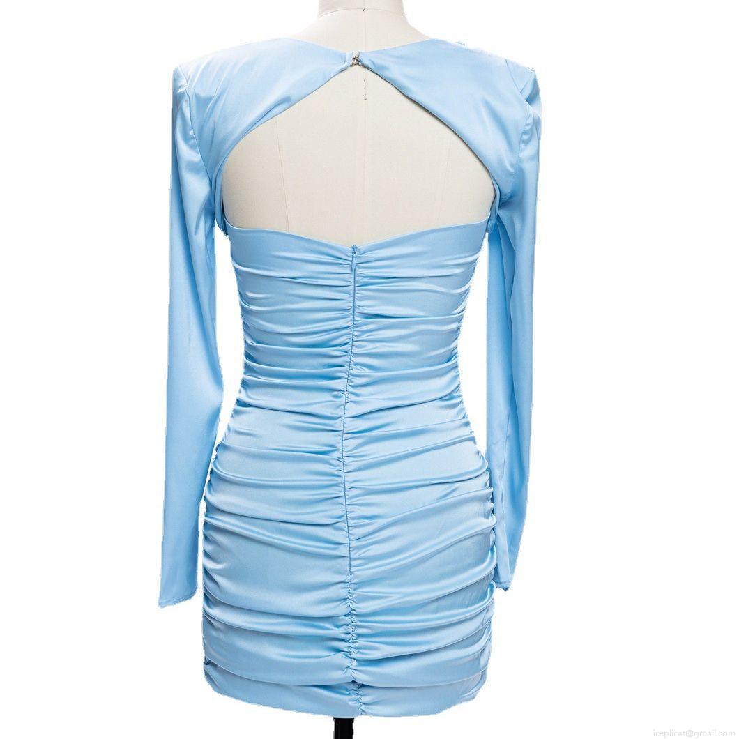 Women Sexy Ruched Mini Dress Long Sleeve Square Neck Cutout Back Slim Fit Satin Finish Party Club Bodycon Elegant Evening Dress