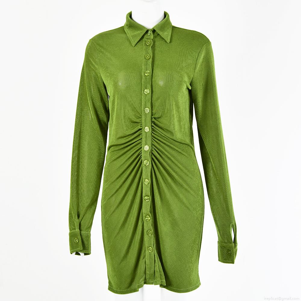 • Women Sexy Ruched Mini Dress Long Sleeve Turnover Collar Button Down Slim Fit Knitted Shirt Dress Solid Color Clubwear Autumn