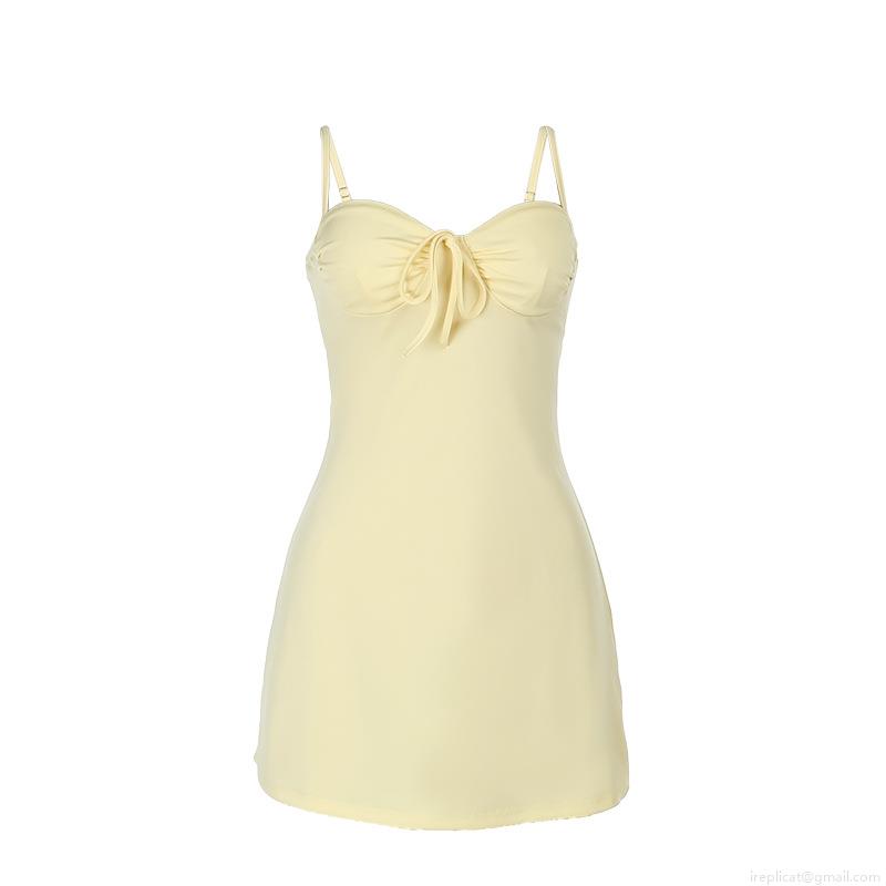 Solid Color, Pleats, Backless, Gathering, Ribbon Bow