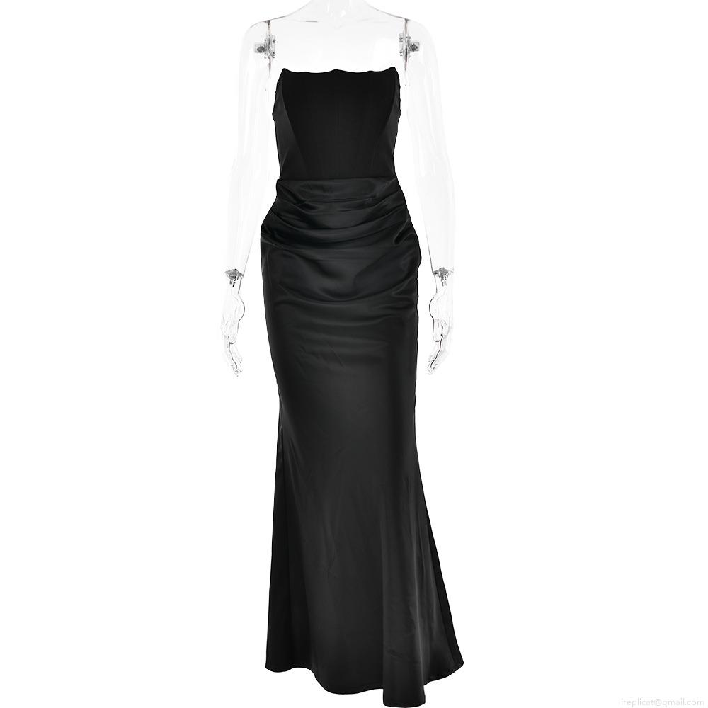 • Women Sexy Satin Corset Maxi Dress Backless Strapless Fishbone Support Bodycon Evening Party Long Dress Elegant Summer Outfits